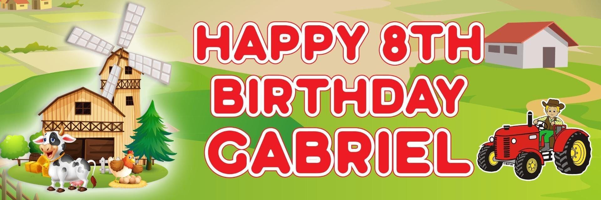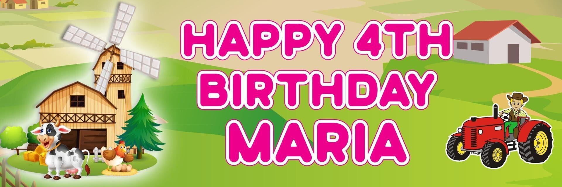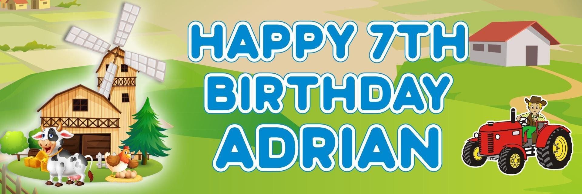 2 Children's Personalised Farm Windmill Farmhouse Birthday Banners Decorations Any Name Any Age