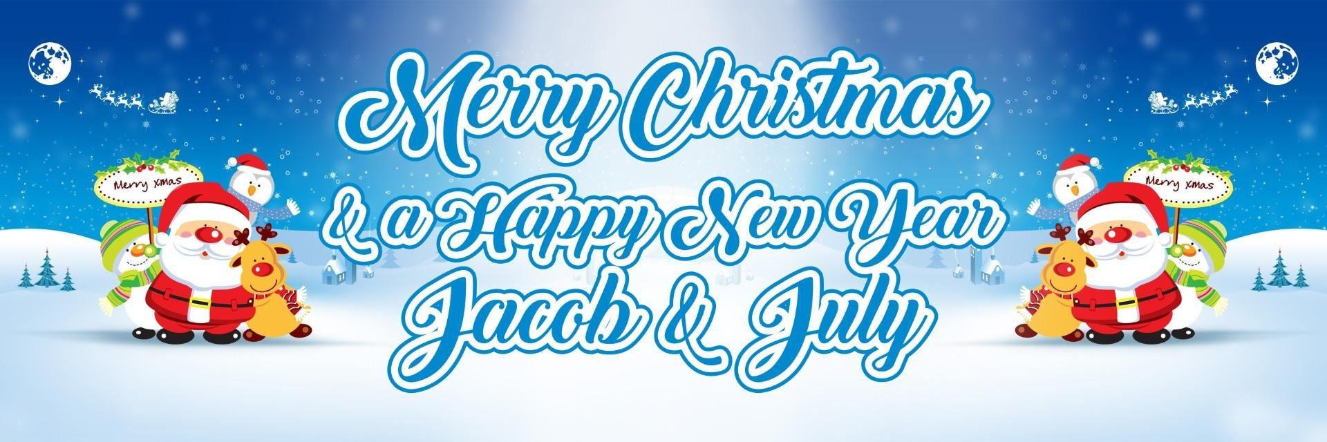 2 Personalised Merry Christmas And Happy New Year Celebration Banners Posters