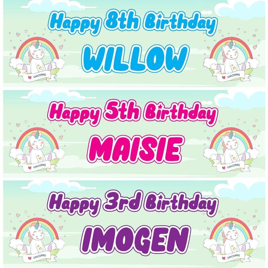 2 Personalised Unicorn Rainbow Birthday Party Celebration Banners Posters Decoration for Kids Girls