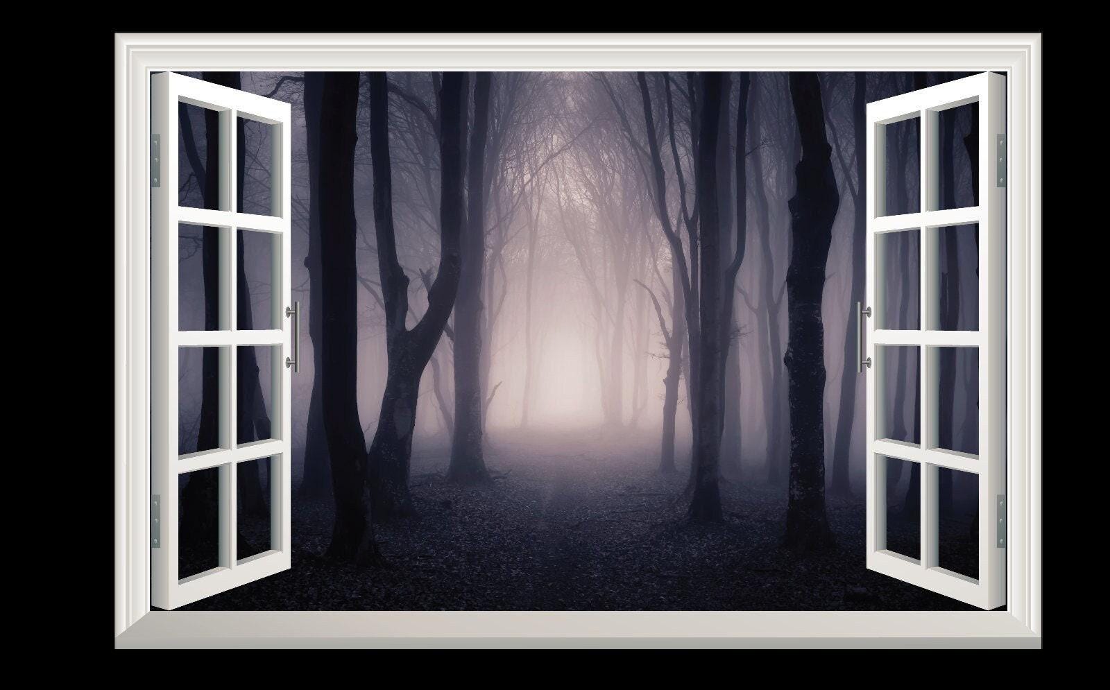 3D Misty Forest Wall Decal: Window View Vinyl Mural