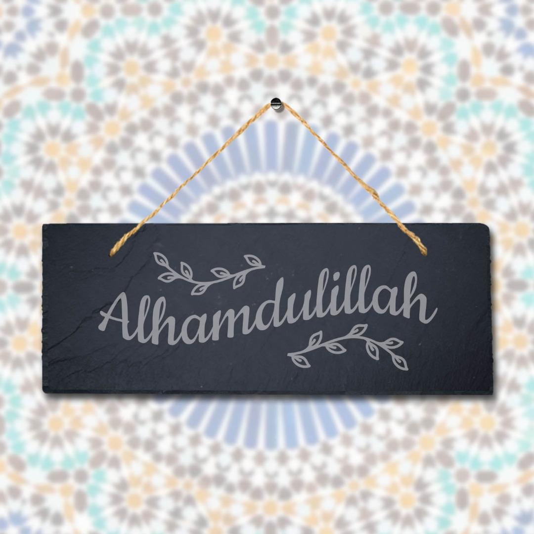 Alhamdulillah Laser Engraved Islamic Calligraphy Wall Hanging Slate Plaque Sign