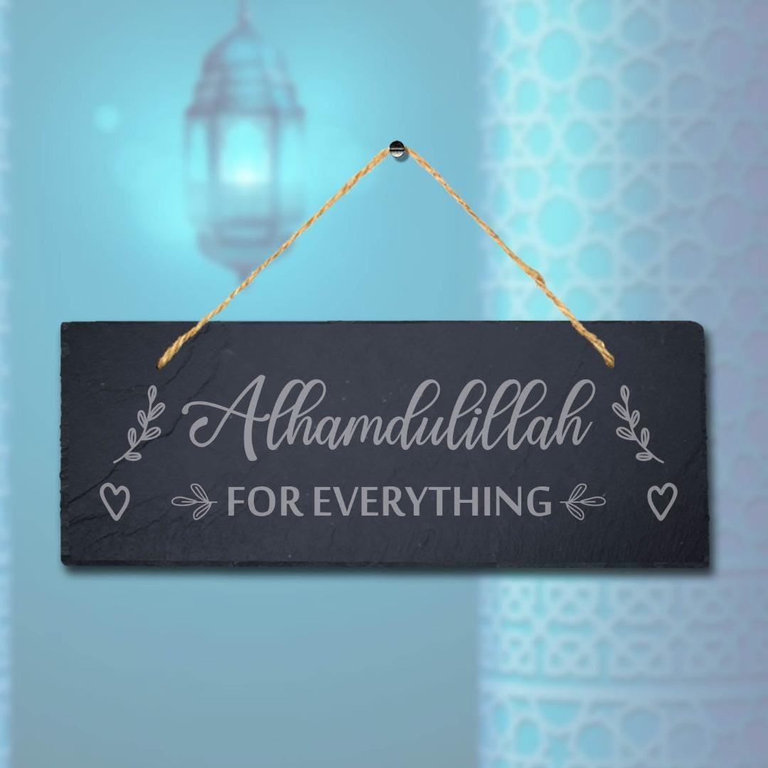 Alhumdulillah For Everything Laser Engraved Islamic Wall Hanging Slate Plaque Sign