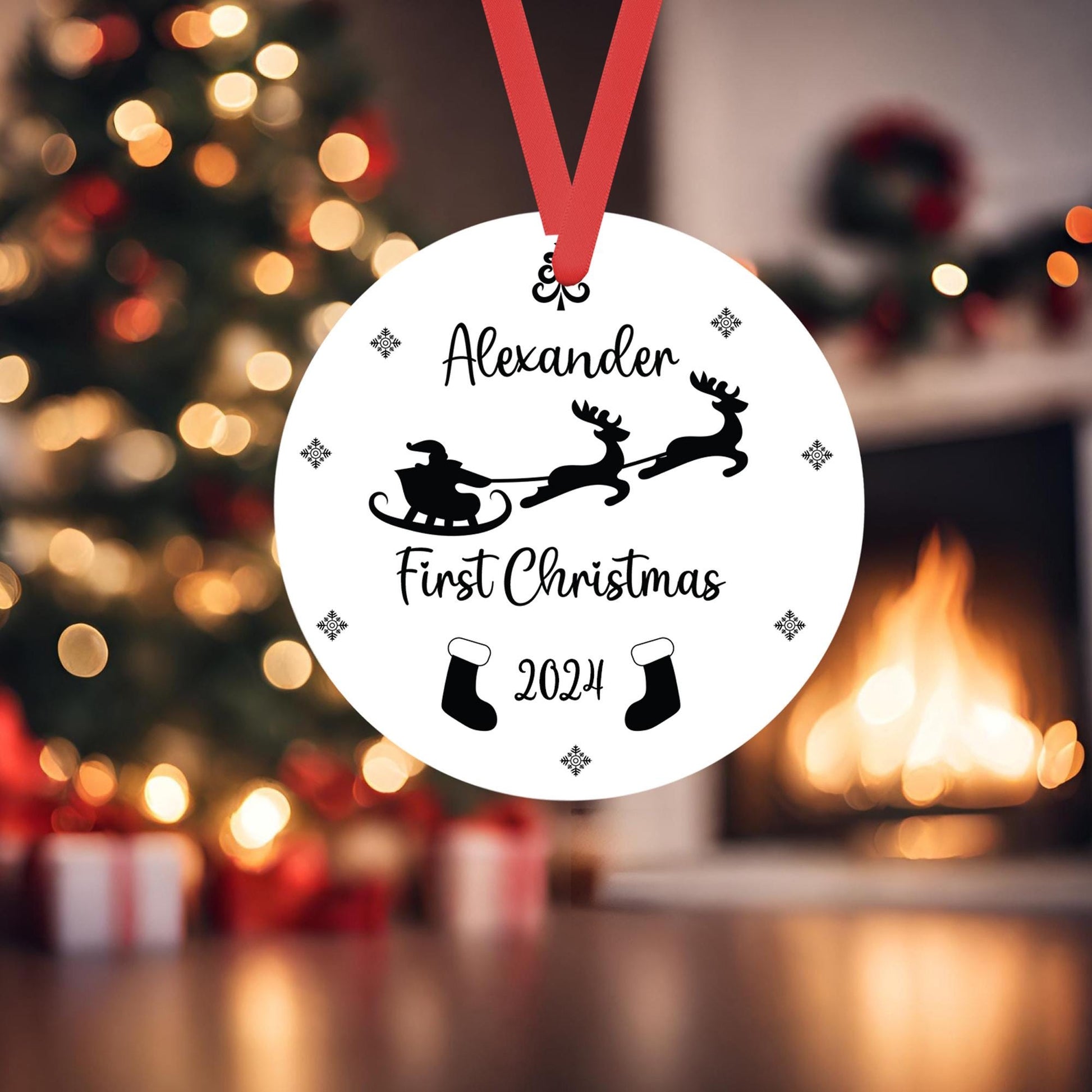 Babys First Christmas Bauble Personalised 1st Xmas Tree Hanging New Born Ornament Name Keepsake