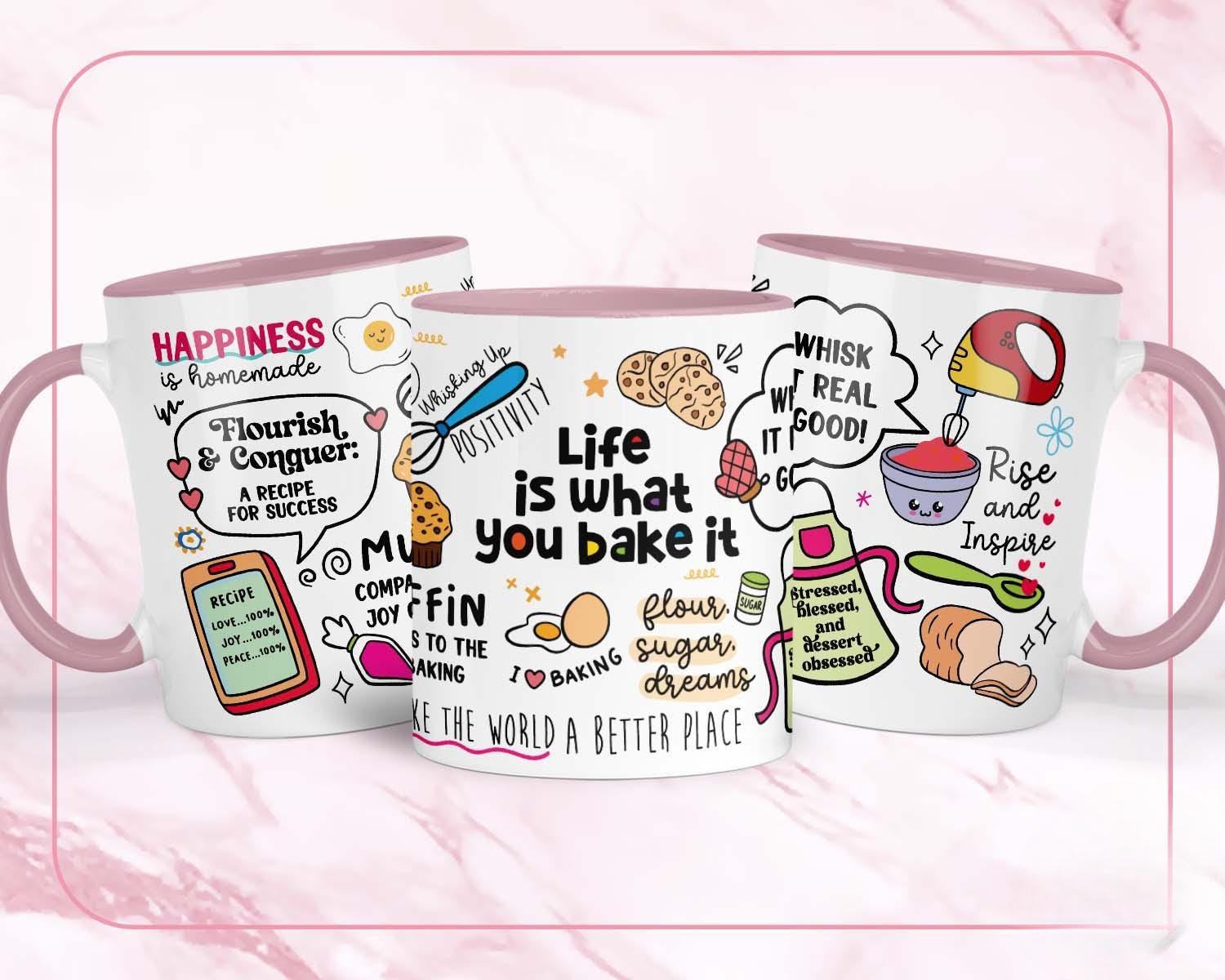 Life Is What You Bake It Pink Mug Set - Perfect Gift for Bakers & Food Lovers