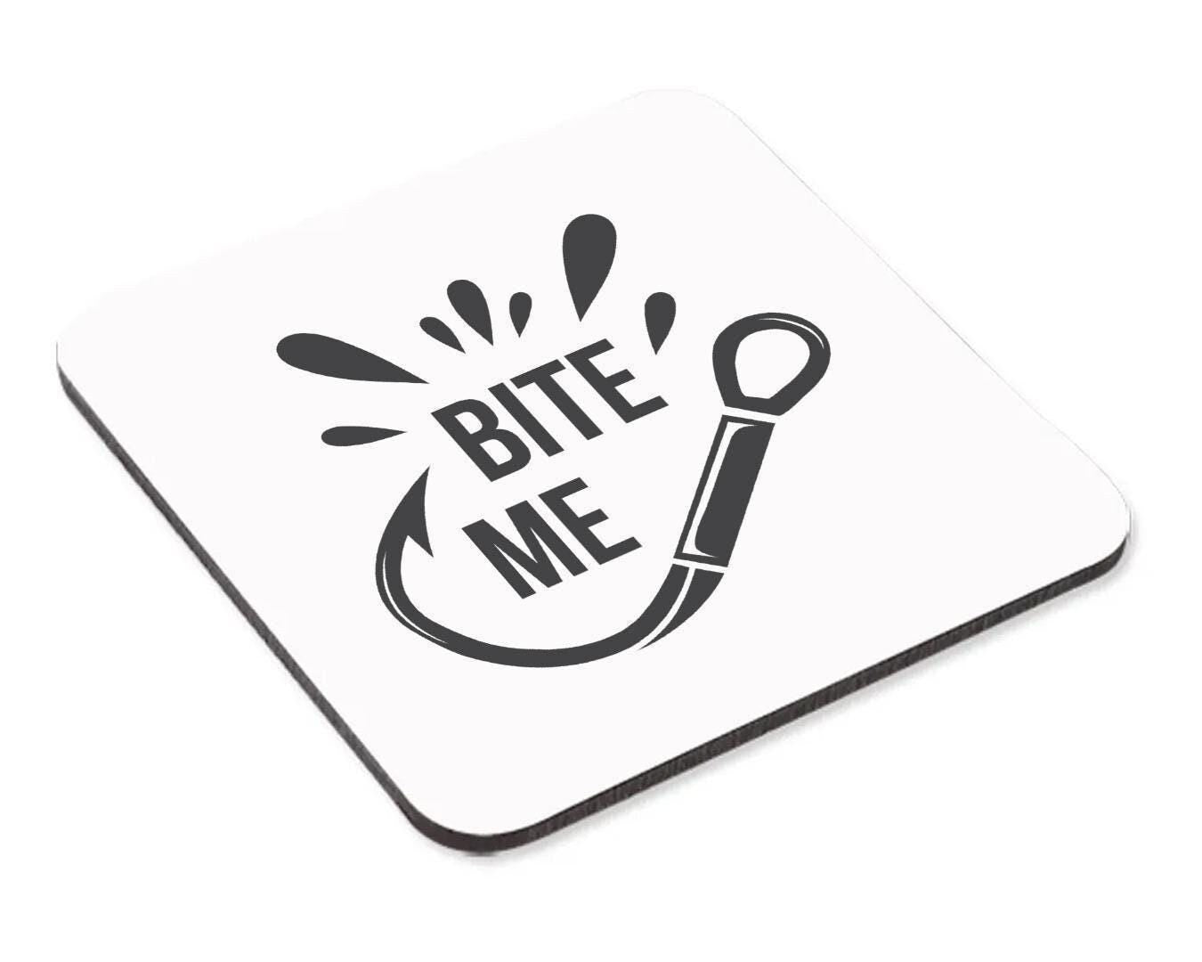 Bite Me Mug & Coaster Set Fishing Hook Fisherman Birthday Christmas Coffee Gift