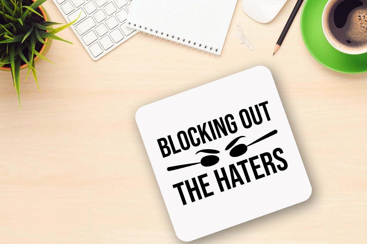 Blocking Out The Haters Ceramic Novelty Mug & Coaster Coffee Tea Cup Office Workspace Gift