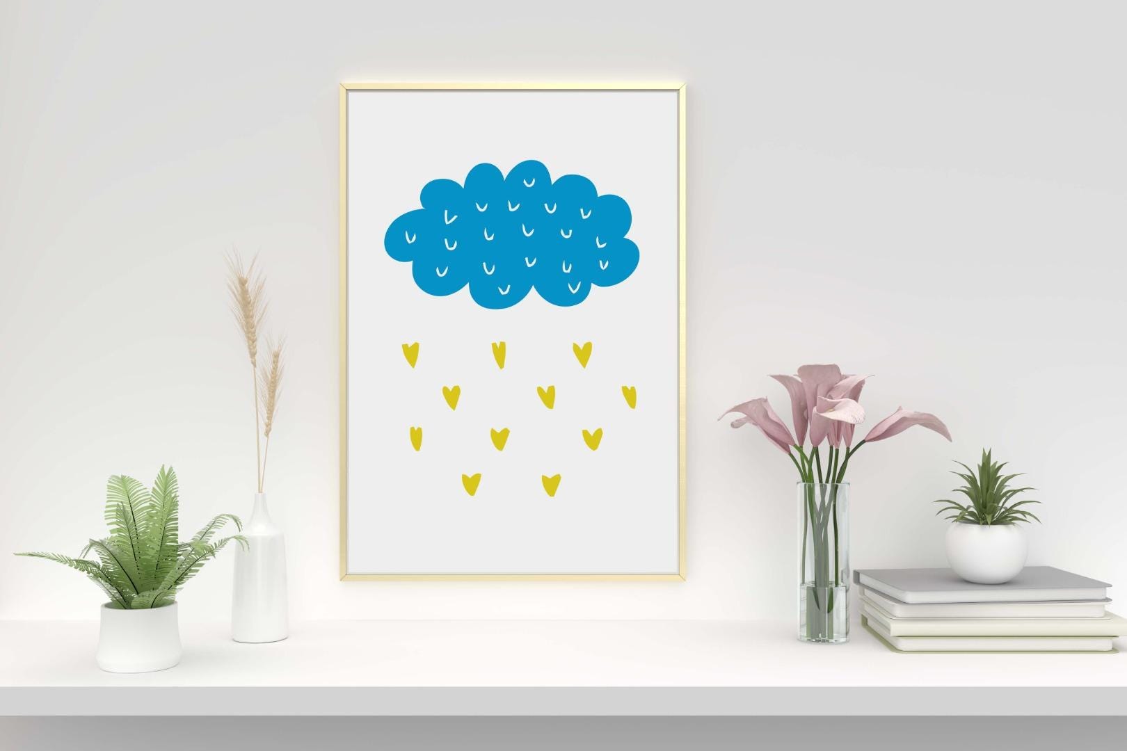 Blue Cloud Raining Hearts Nursery Bedroom Boys Girls Wall Decor Art Poster Print
