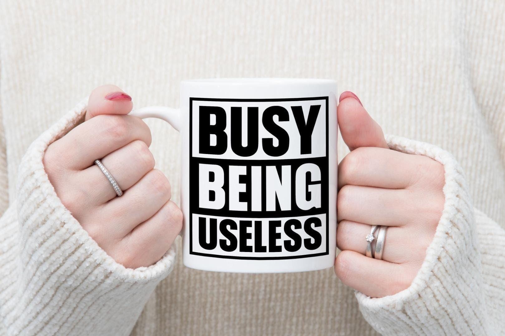 Busy Being Useless Mug & Coaster Set Funny Employees Workers Employers Tea Gift