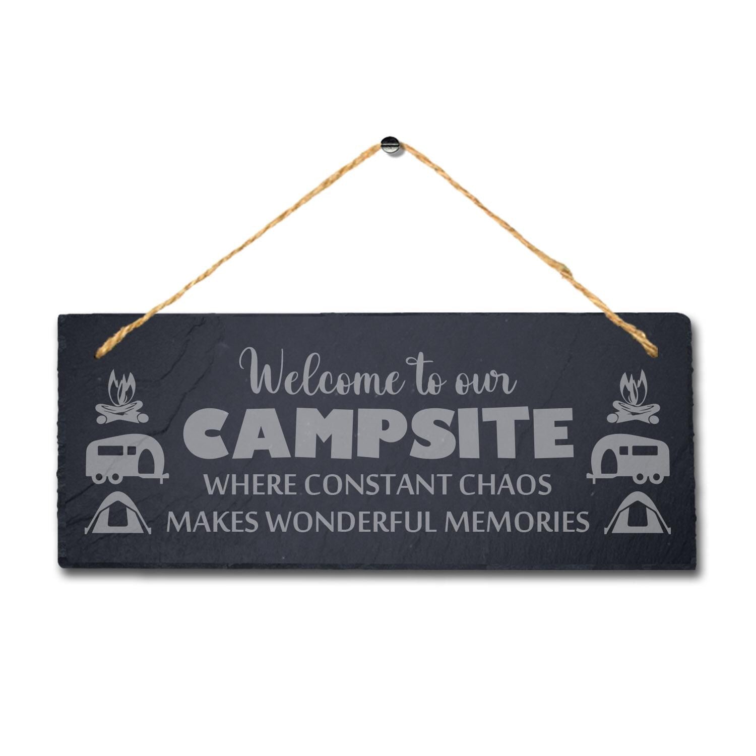 Campsite Chaos Laser Engraved Hanging Slate Campfire Camp Caravan Plaque Sign