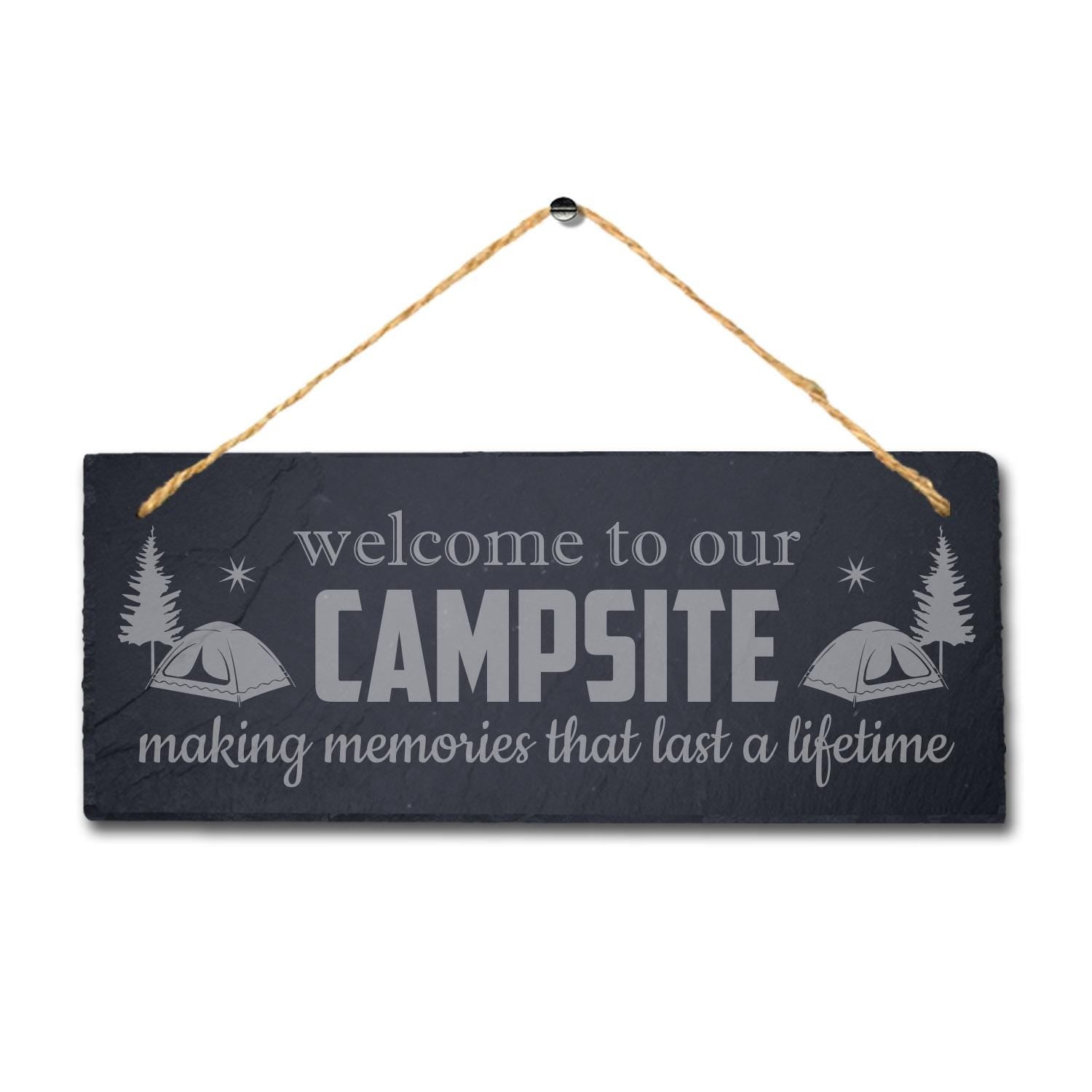 Campsite Laser Engraved Hanging Slate Plaque Summer Adventurer Tour Camping Sign
