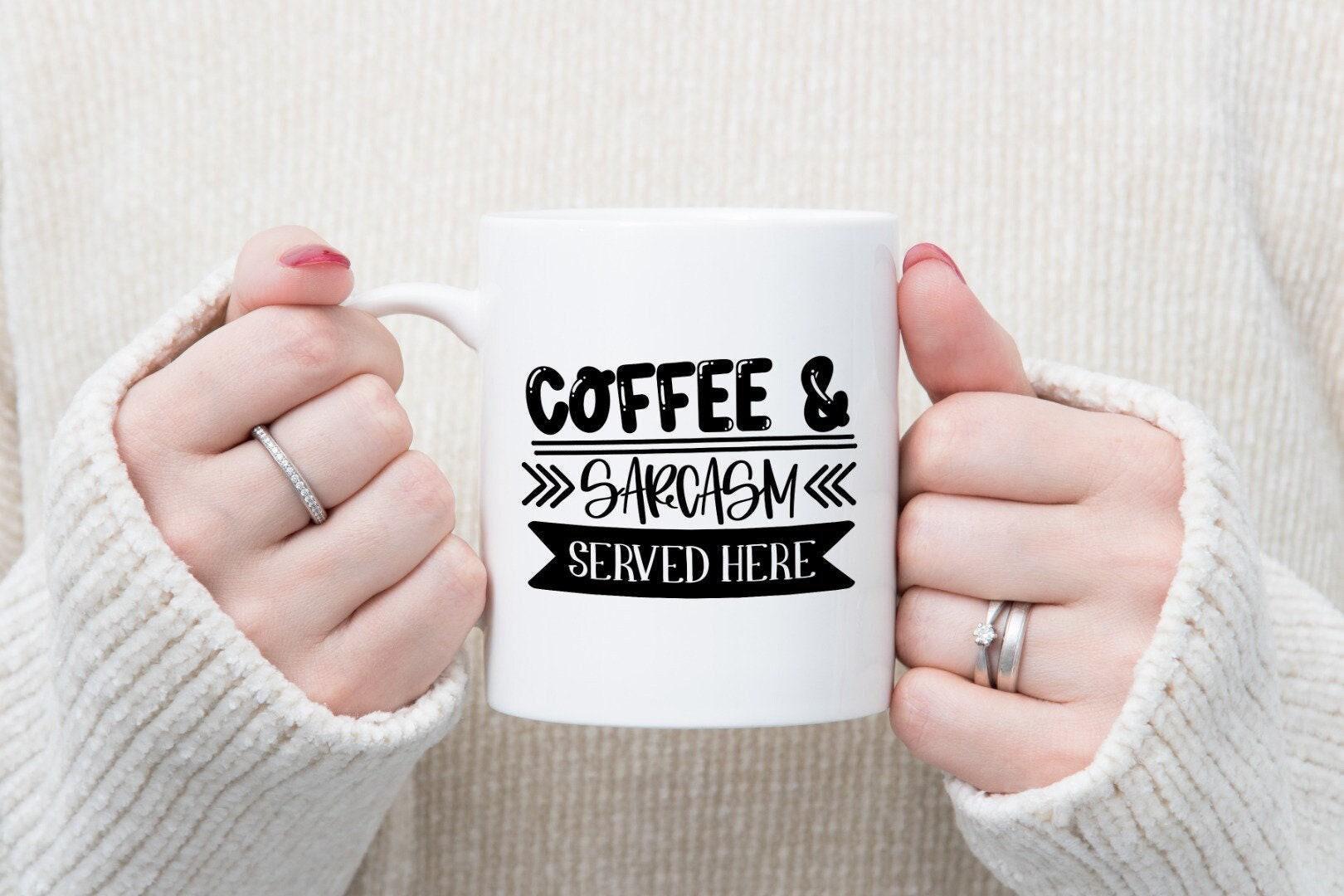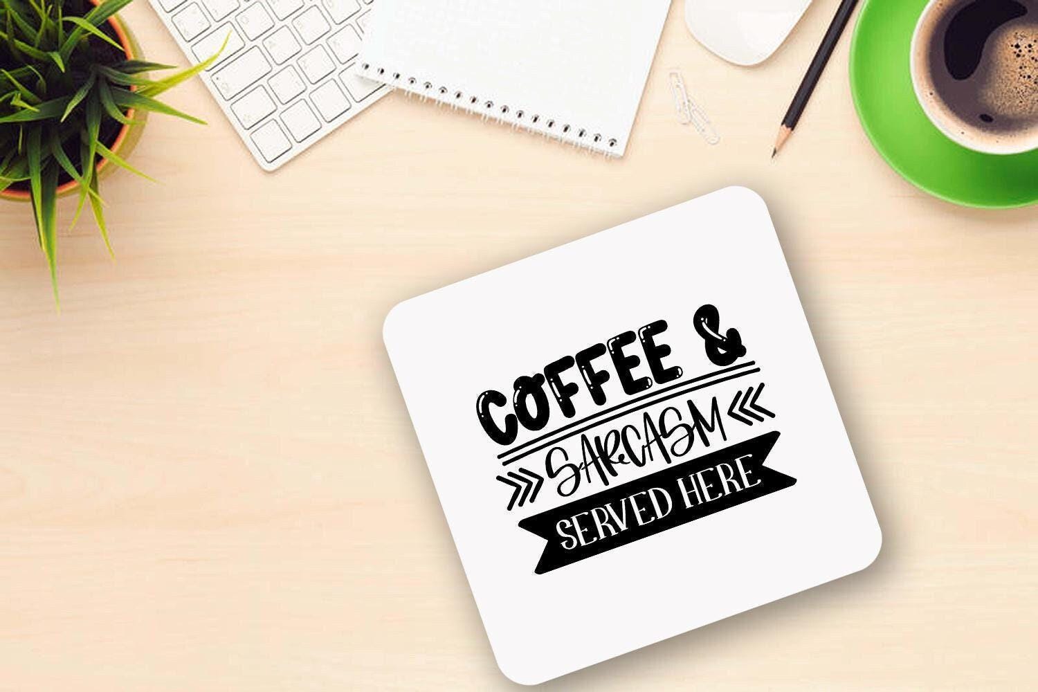 Coffee & Sarcasm Served Here - Funny Ceramic Novelty Mug And Coaster Coffee Tea Cup Gift