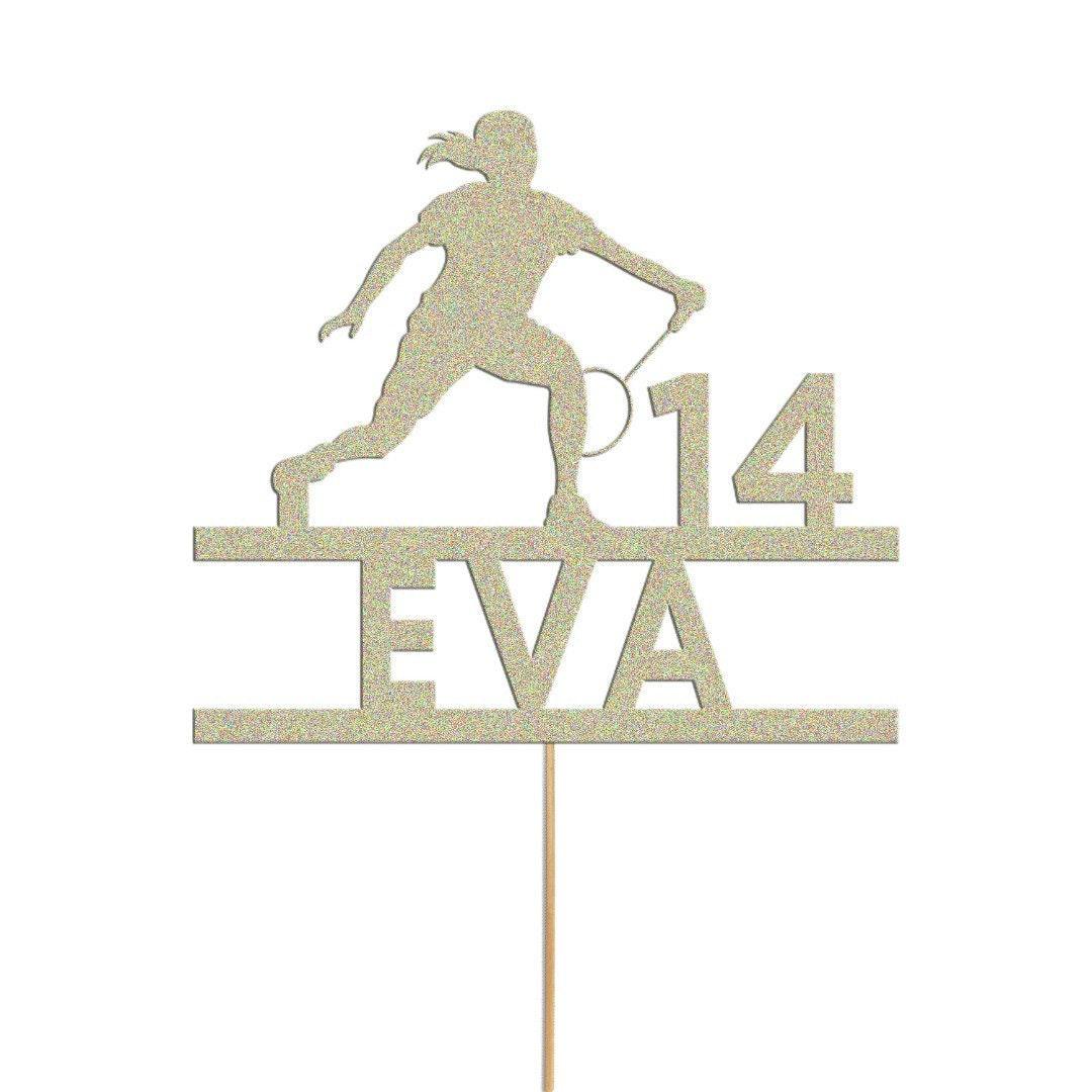 Custom Glitter Tennis Cake Topper: Personalised Birthday Party Decor