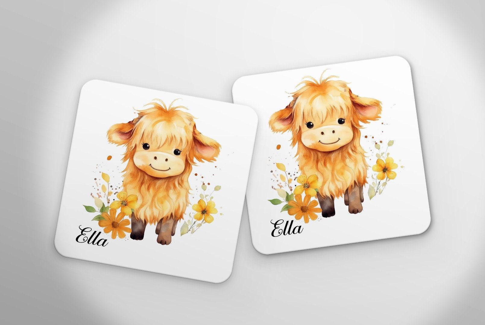 Custom Highland Cow Personalised Mug & Coaster Set Fluffy Cow Design Birthday Christmas Gifts