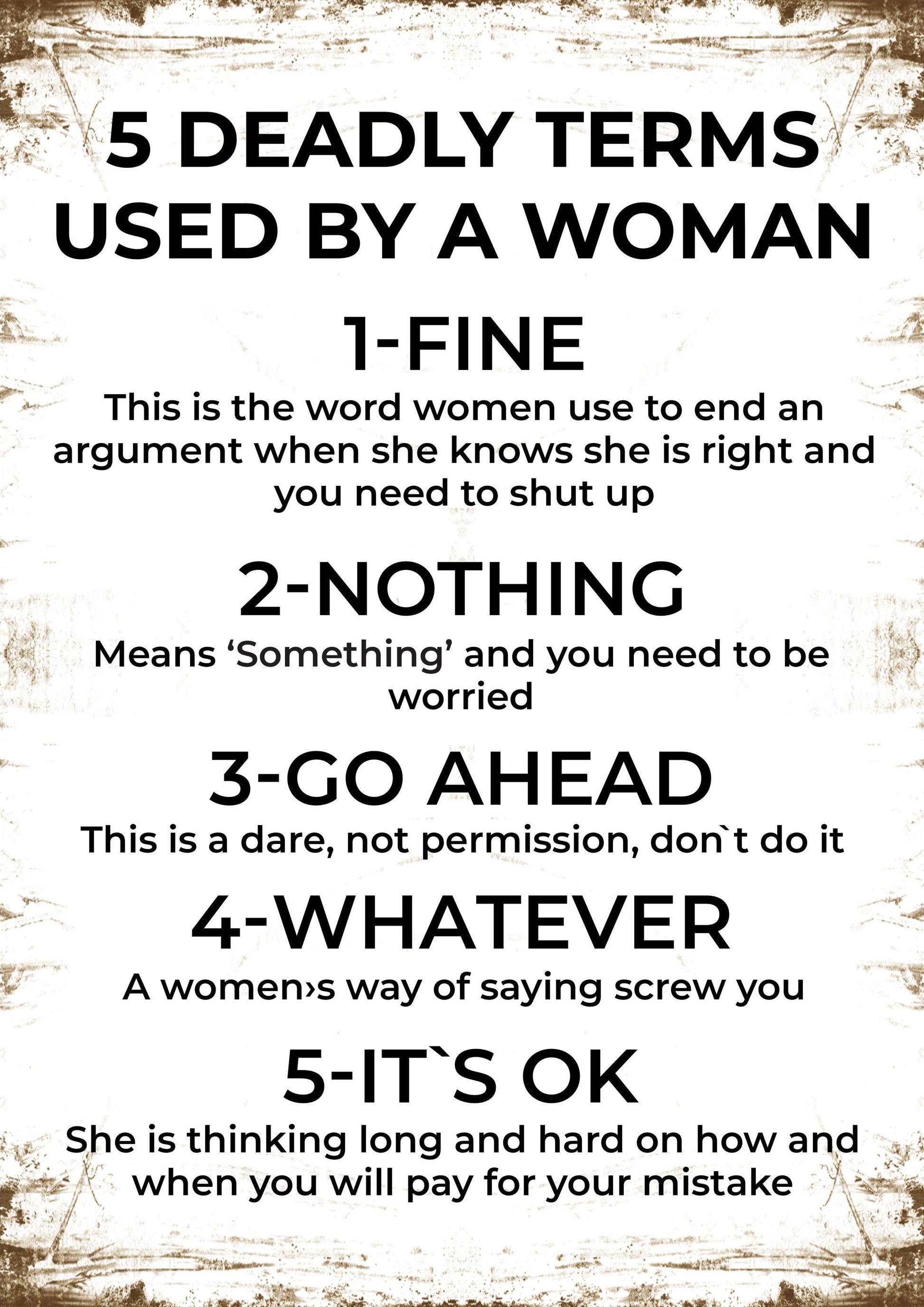 Deadly Terms Used By A Woman Fine Nothing Go Ahead Wall Poster Funny Print Decor