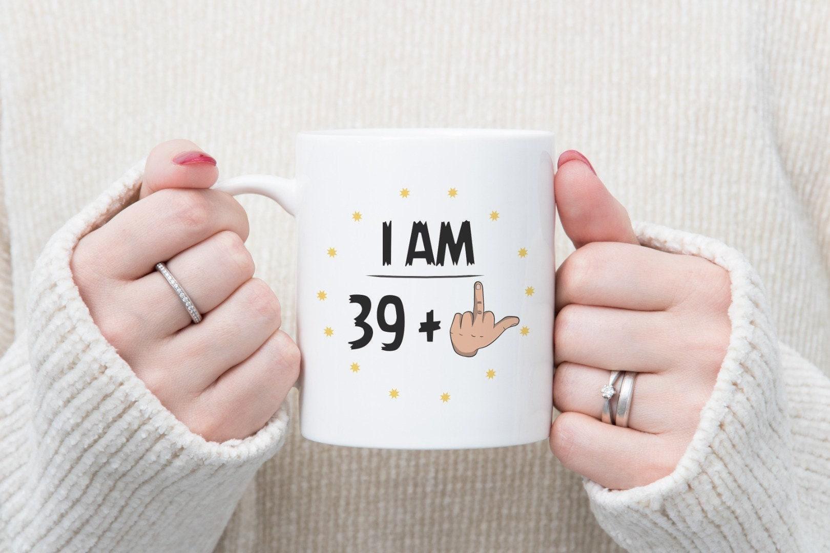 Funny 40th Birthday Mug & Coaster Set: Rude Middle Finger Design