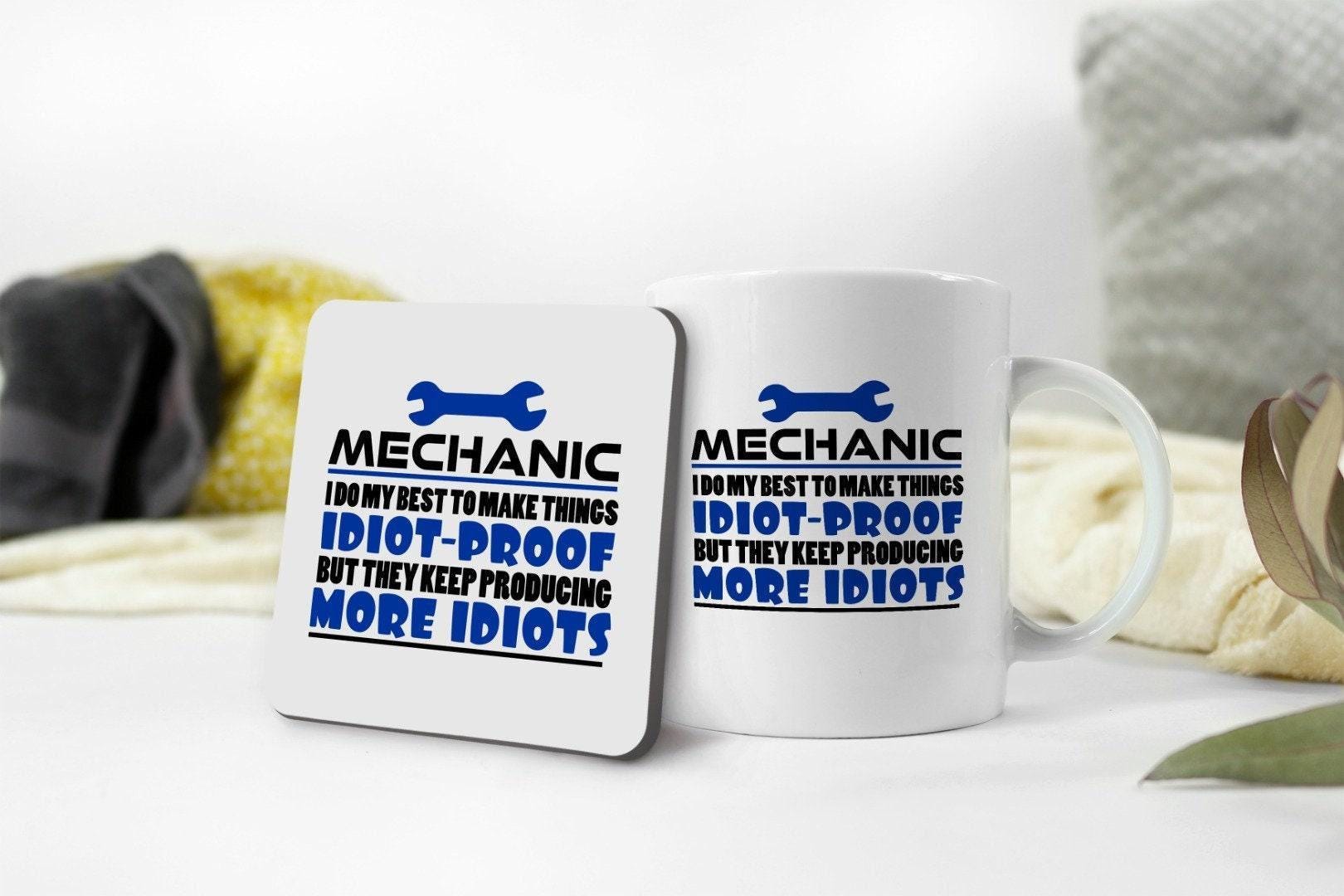 Funny Mechanic Mug & Coaster Set: Novelty Coffee Tea Cup Gift