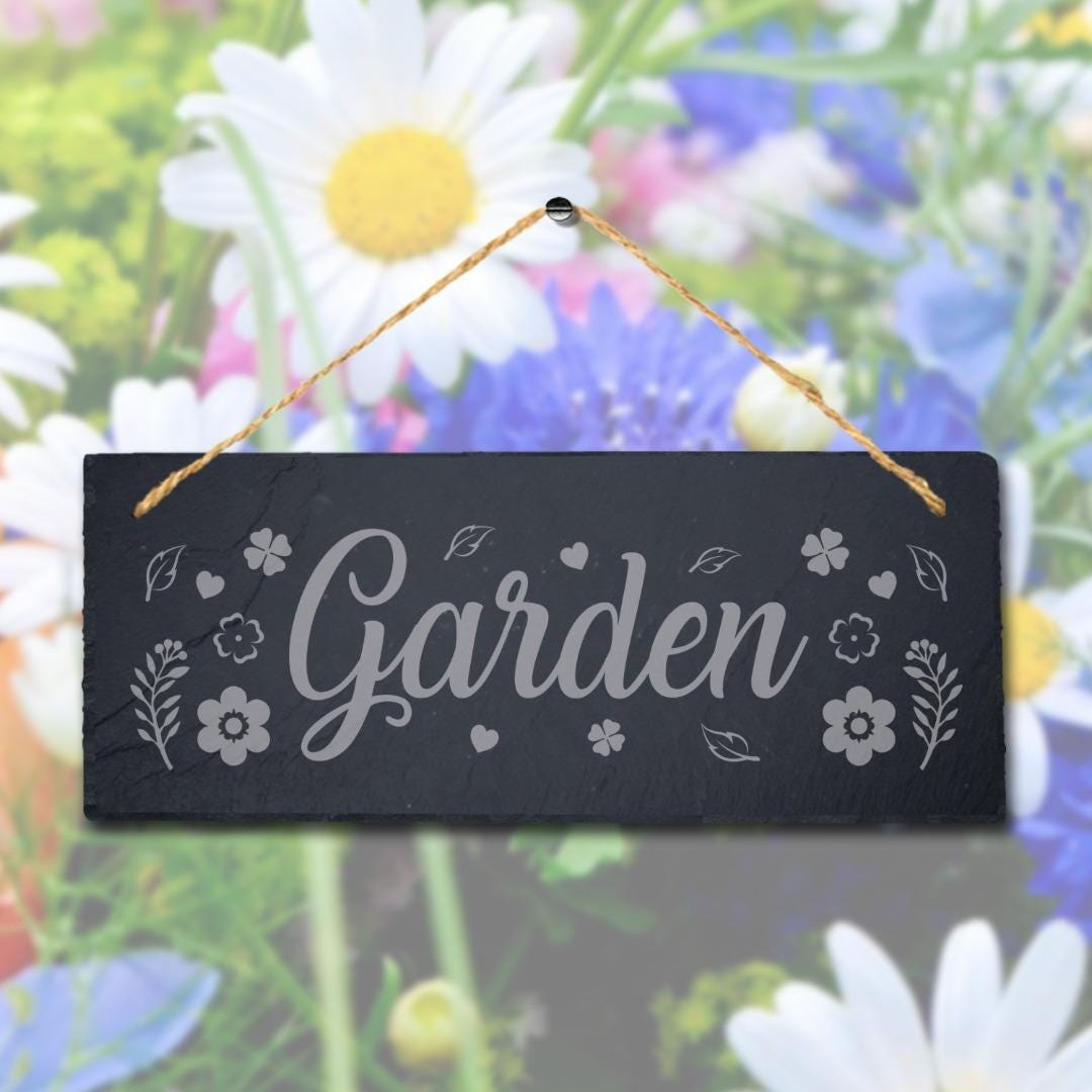 Garden Flowers Pattern Laser Engraved Hanging Slate Home Decor Plaque Sign