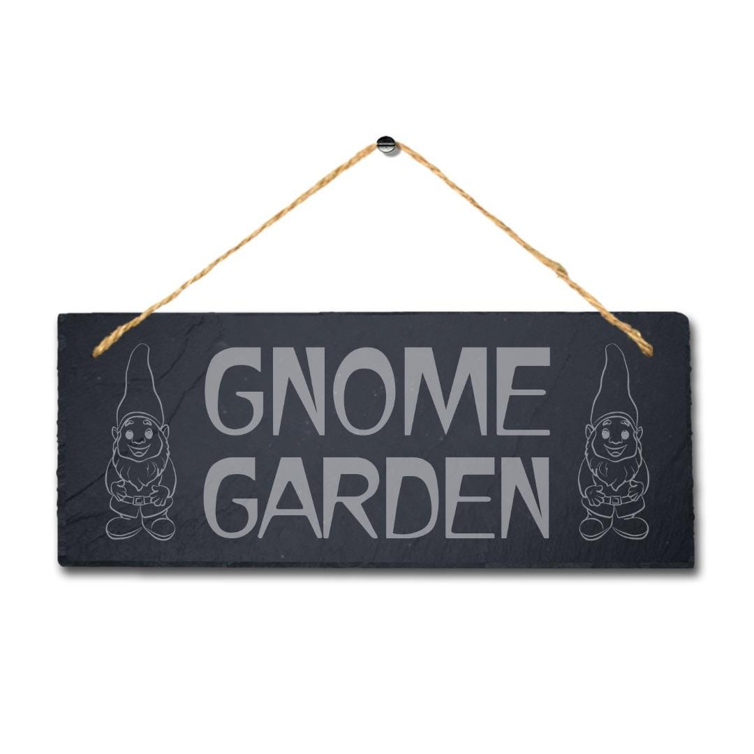 Gnome Garden Laser Engraved Hanging Slate Garden Home Decor Plaque Sign