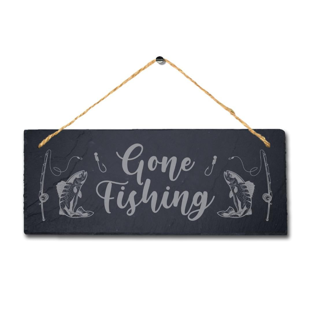 Gone Fishing Laser Engraved Hanging Slate Beach Sea Fishing Point Plaque Sign