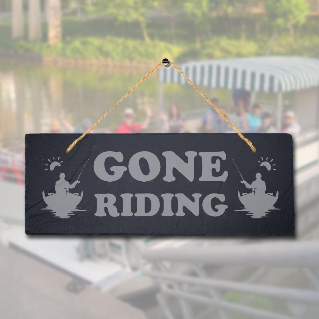 Gone Riding Laser Engraved Hanging Slate Fisher Man Fishing Lake Sea Plaque Sign