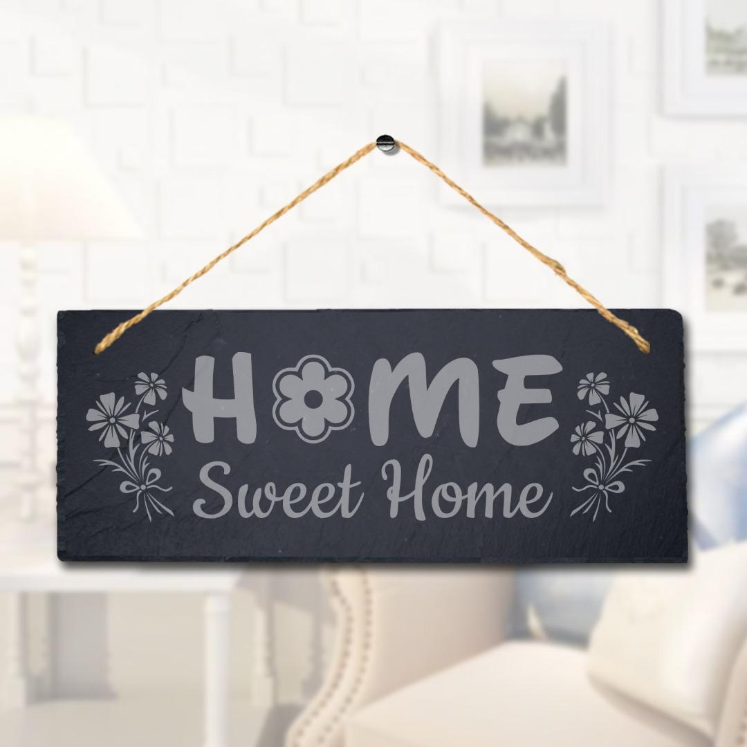 Home Sweet Home Laser Engraved Hanging Slate Family Love Wall Door Plaque Sign