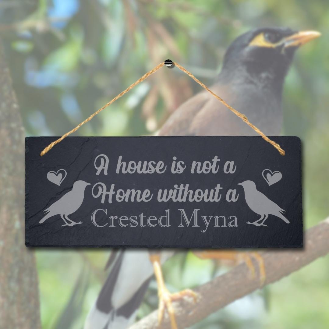 House Not Home Without Crested Myna Laser Engraved Hanging Slate Starling Sign