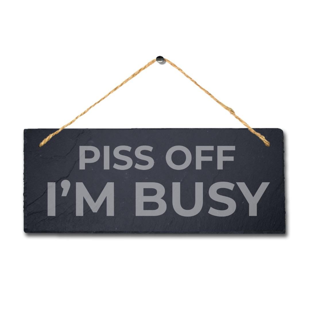 I Am Busy Laser Engraved Hanging Slate Humorous Home Office Room Door Plaque Sign