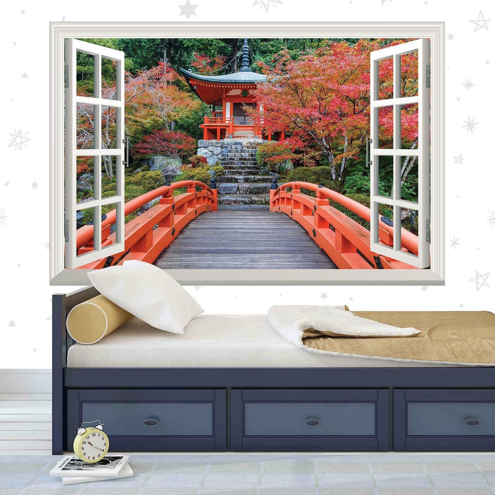 Japanese Temple 3D Window View Wall Decal: Scenic Nature Walkway