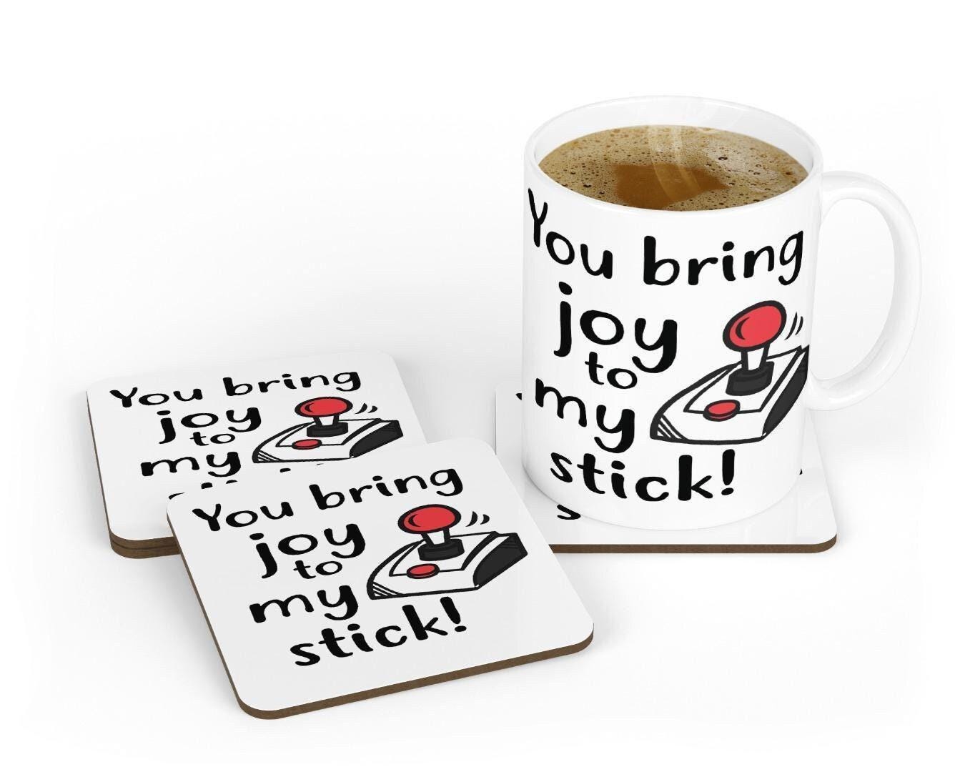 Joystick Mug & Coaster Set Novelty Gamer Gaming Handle Christmas Coffee Tea Gift