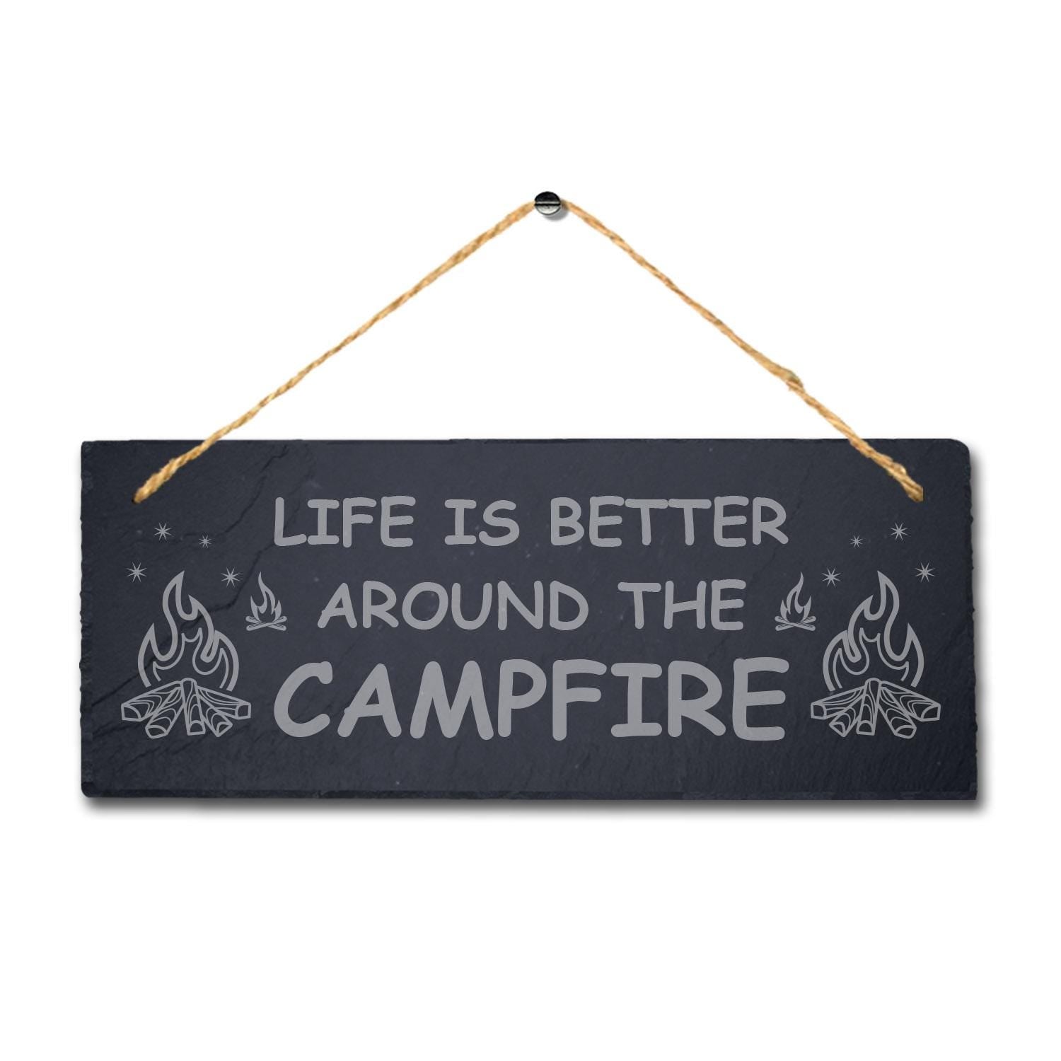 Life Better Campfire Laser Engraved Hanging Slate Plaque Friends Camping Sign