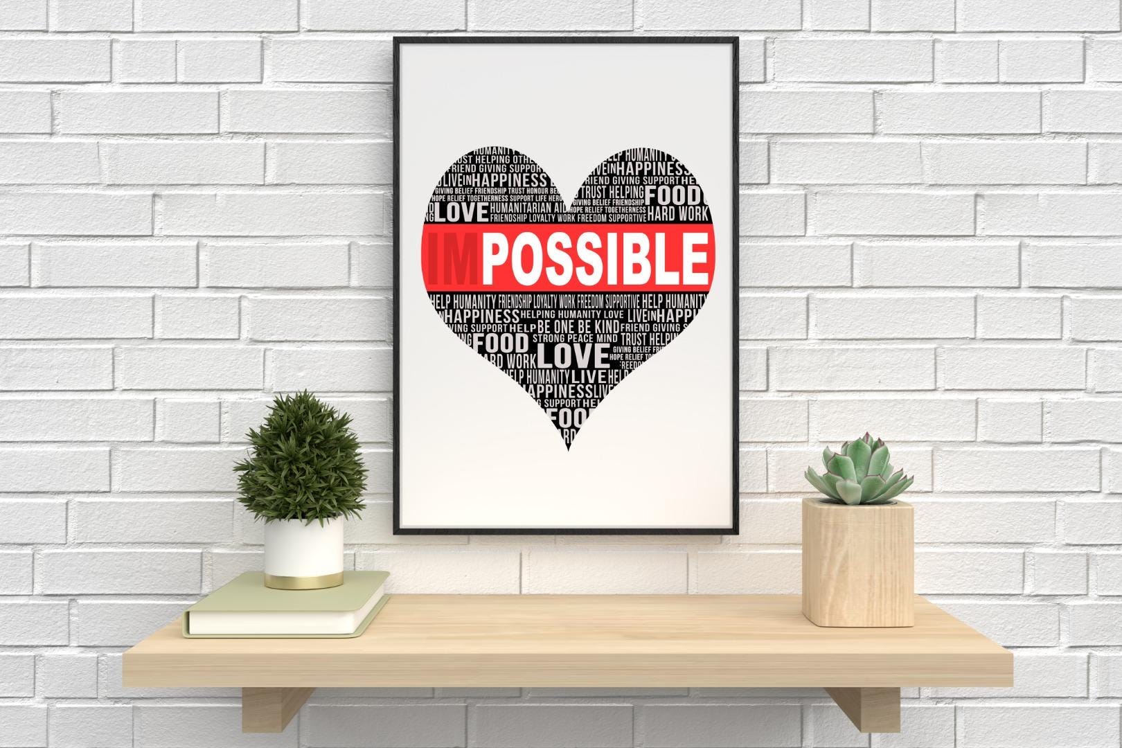 Love Heart Im Possible Inspirational Positive Quote Poster Print Wall