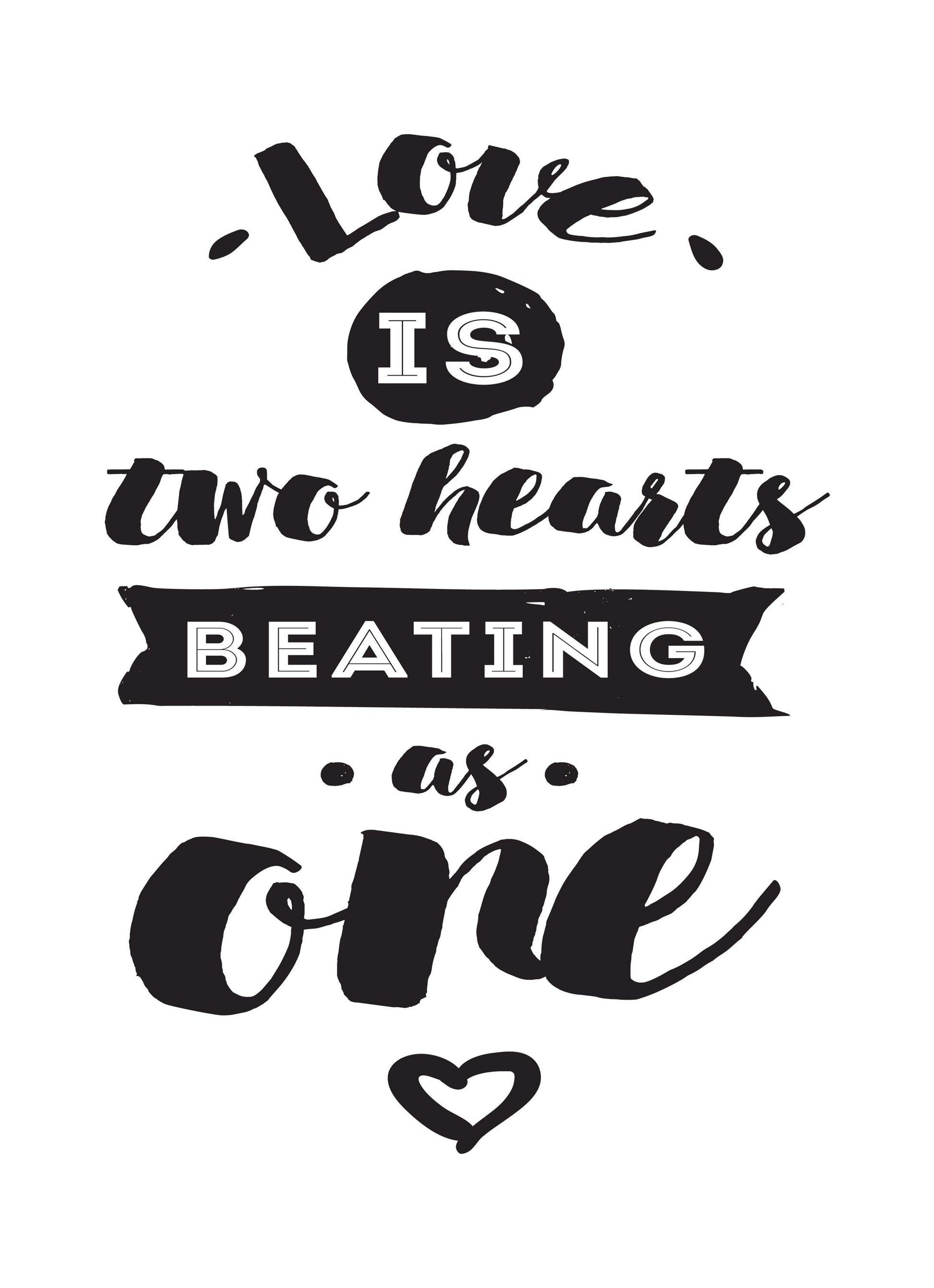 Love Is Two Hearts Beating As One Romantic Inspirational Words Poster Print Wall