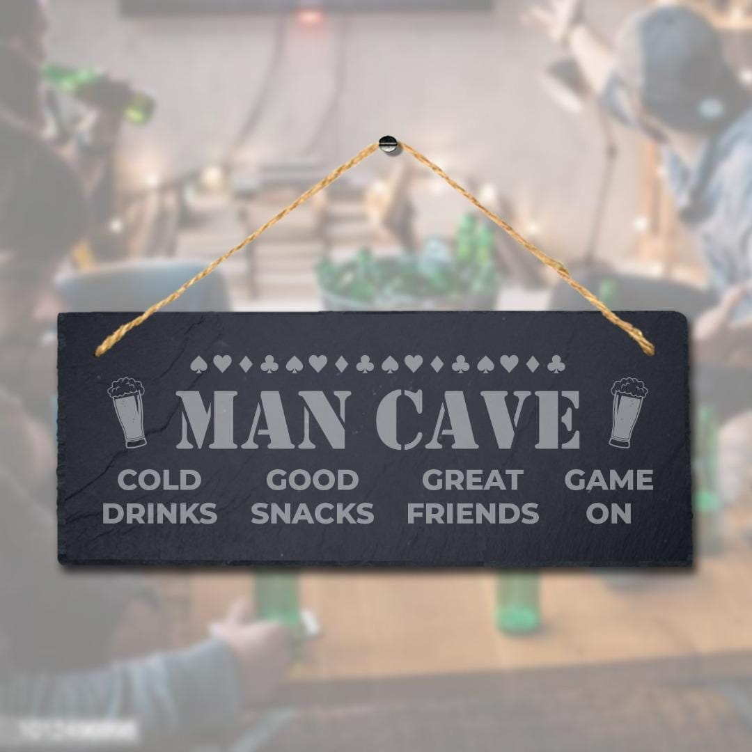 Man Cave Cold Drinks Good Snacks Laser Engraved Hanging Slate Pub Shed Plaque Sign