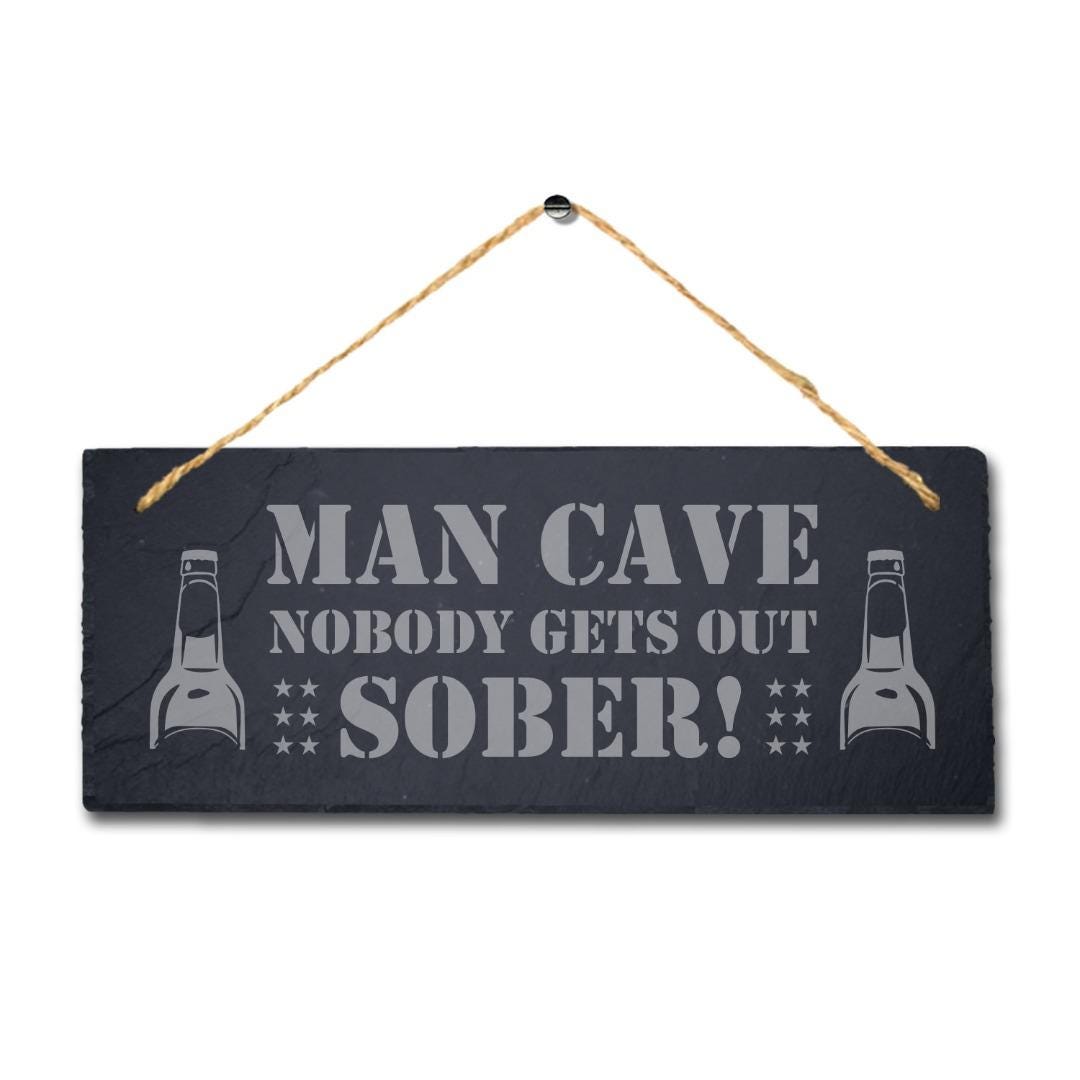 Man Cave Nobody Gets Out Sober Laser Engraved Hanging Slate Pub Shed Plaque Sign