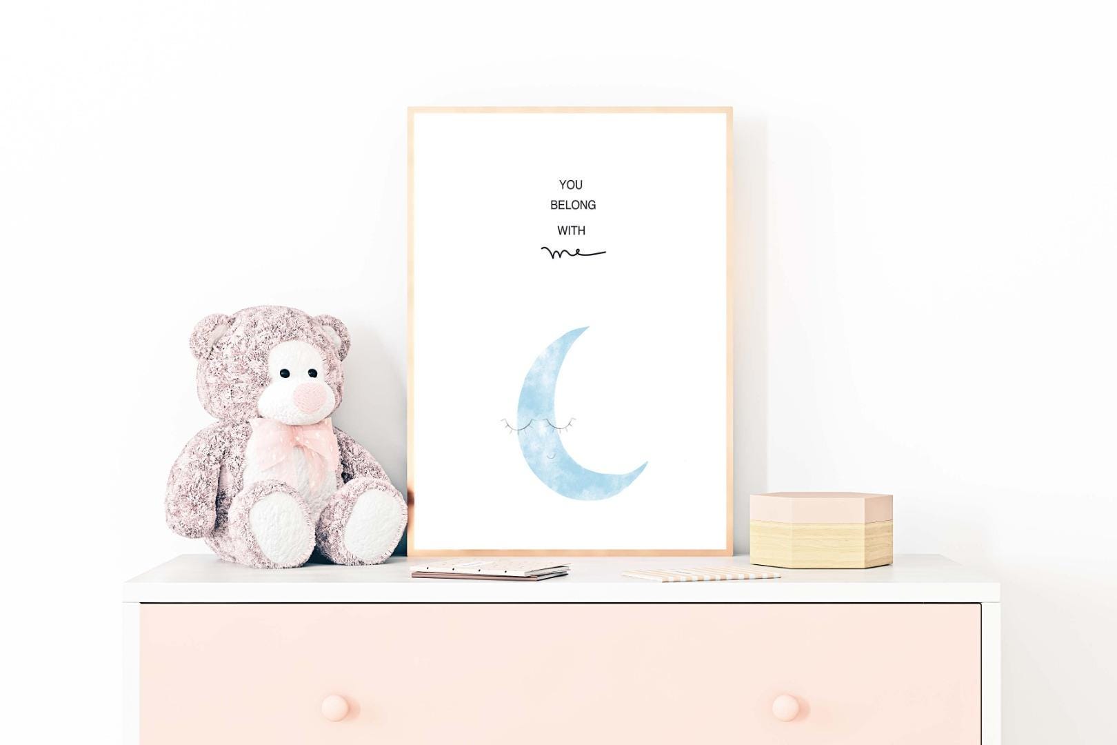 Moon Eyelashes Kids Boho Watercolour Hand Painted Effect Nursery Wall Art Poster