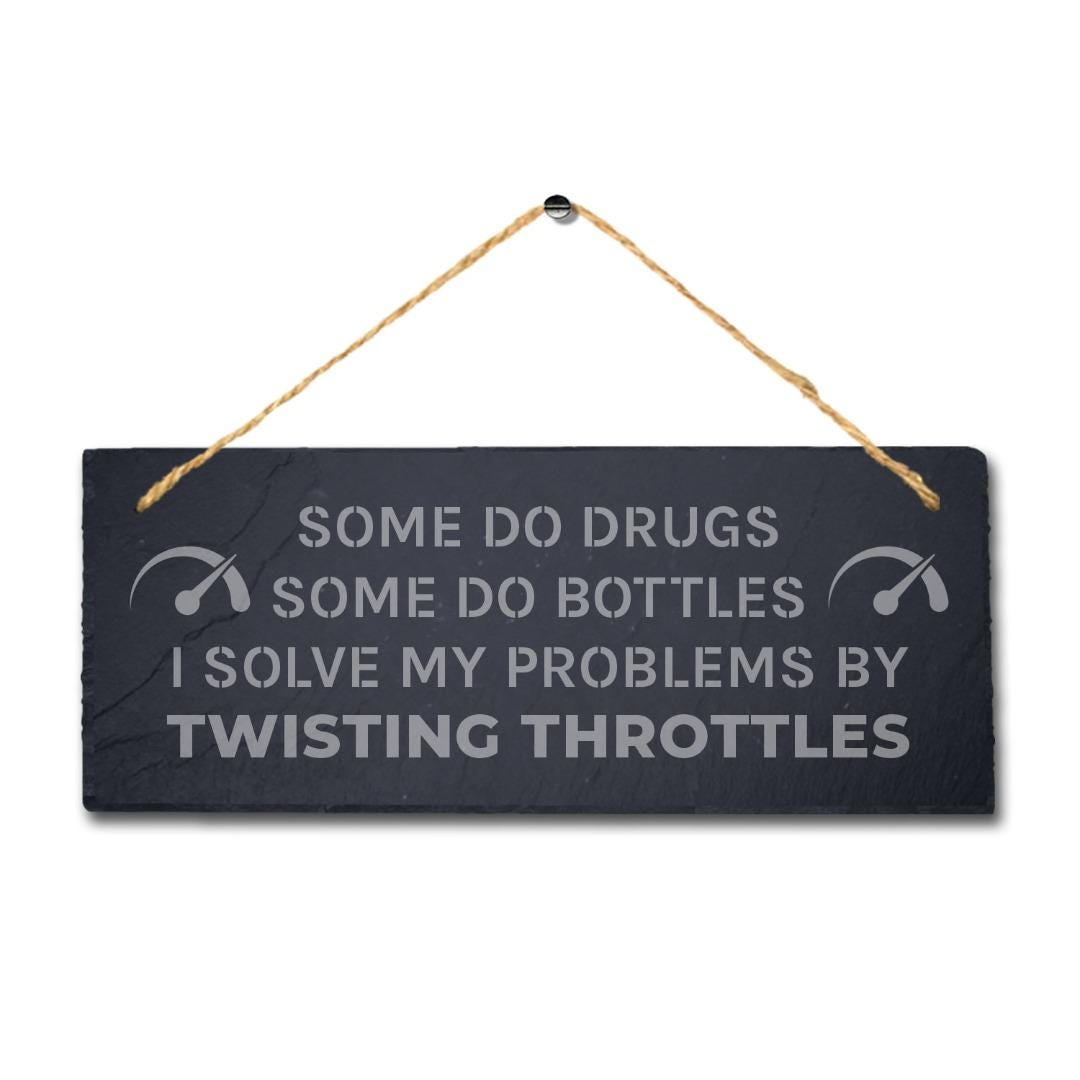 Motorbike Slate Plaque: Laser Engraved Shed Sign with Jute Rope