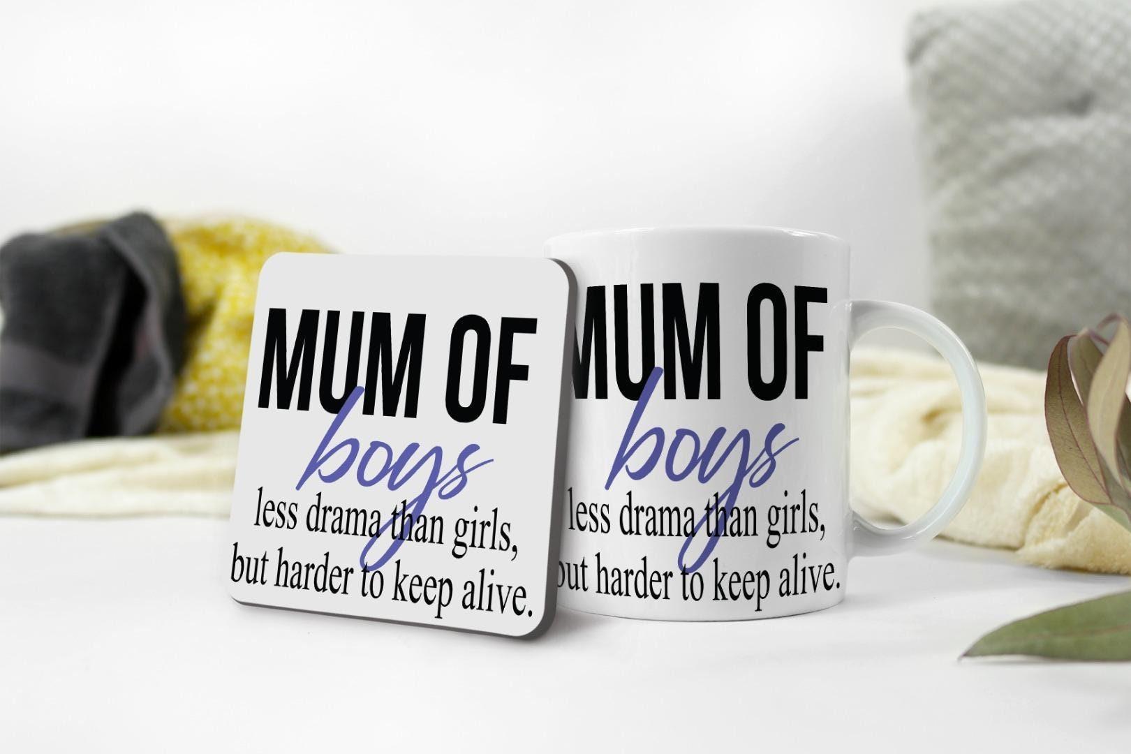 Mum Of Boys Mug & Coaster Set Mothers Day Mummy Birthday Christmas Coffee Gift