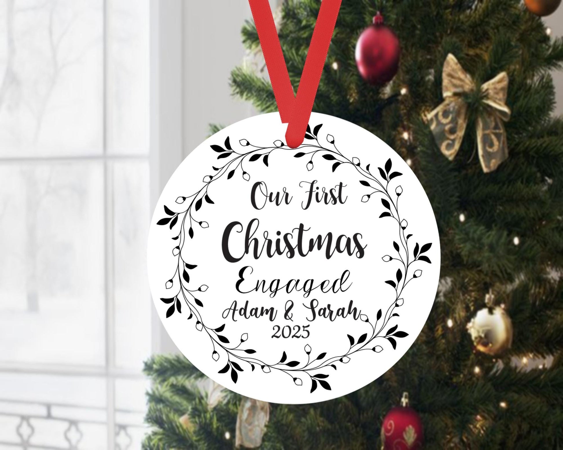 Our First Christmas As Engaged Bauble Personalised Name Ceramic Ornament Gift