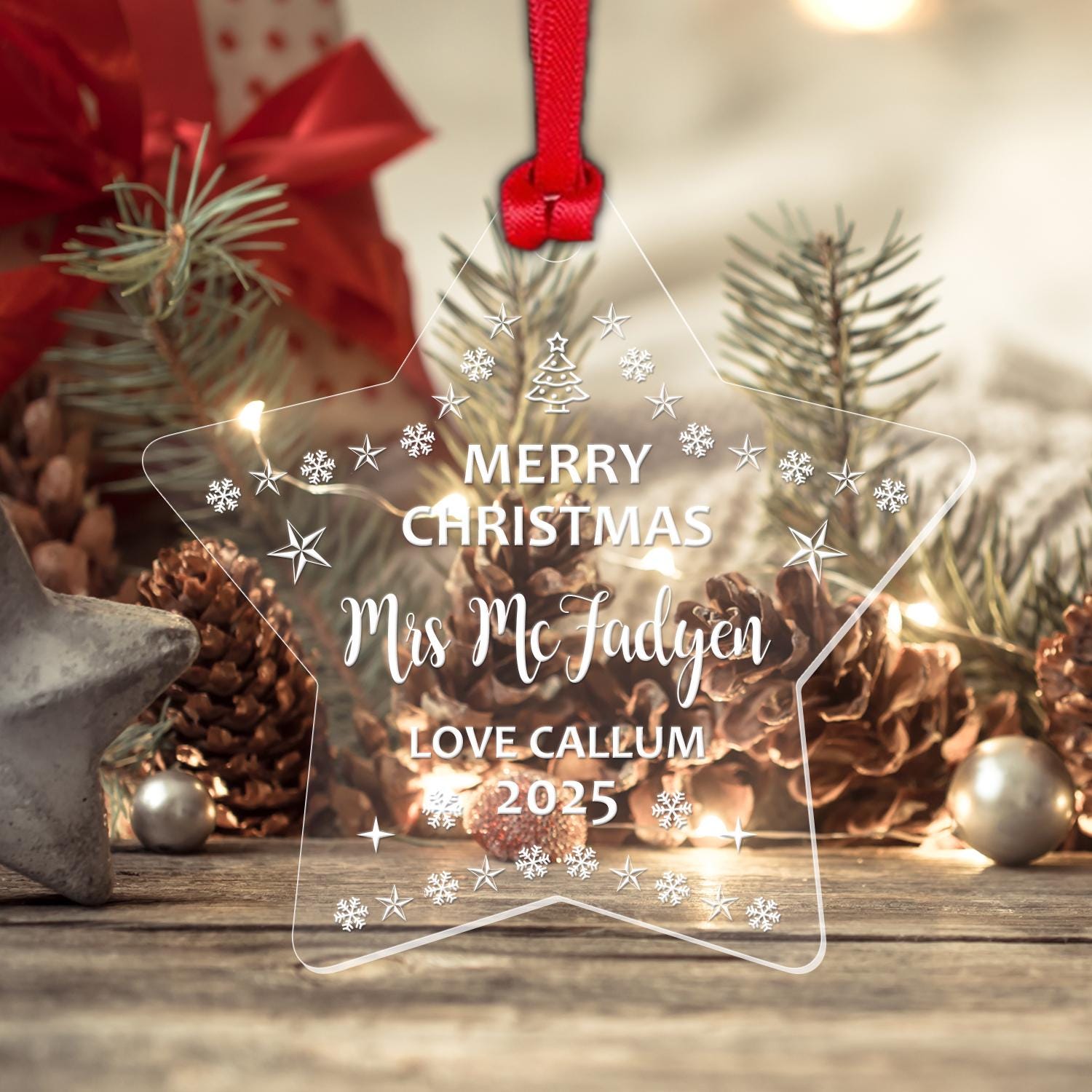 Personalised Christmas Star Bauble Teacher Teaching Assistant Nursery Xmas Gift