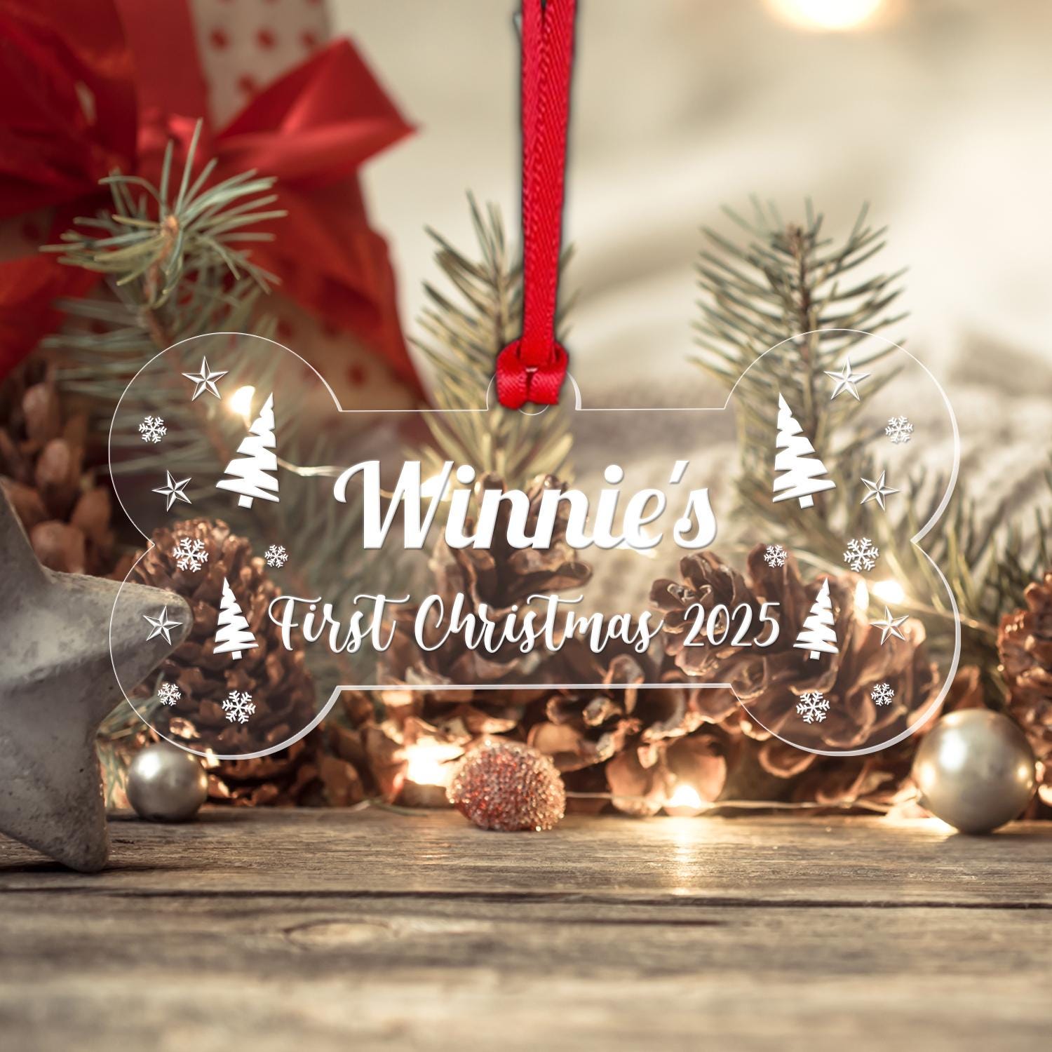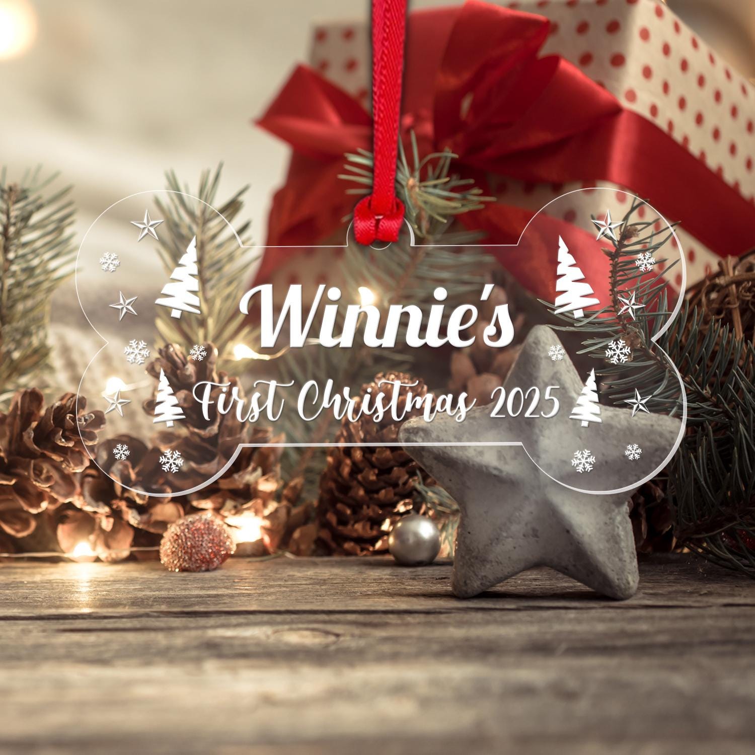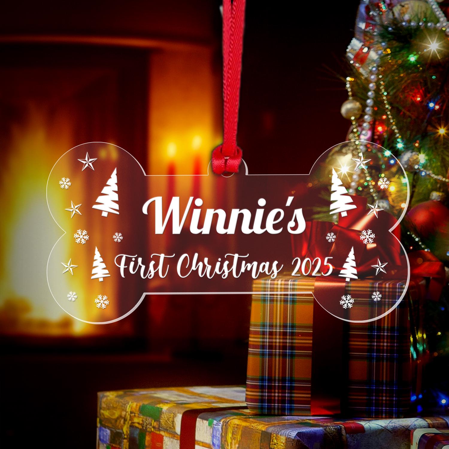 Personalised Dogs First Christmas Bauble Puppy Pet 1st Xmas Gift Tree Decoration