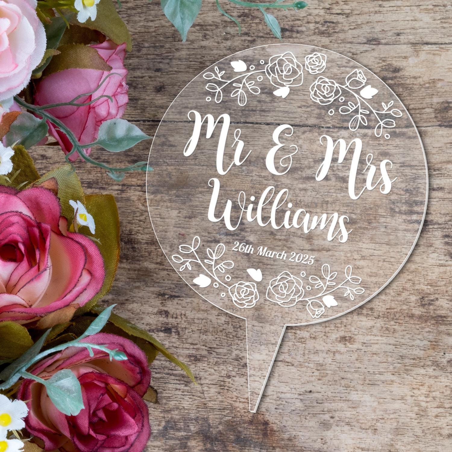 Personalised Engraved Mr & Mrs Wedding Cake Topper Circle Acrylic Decoration