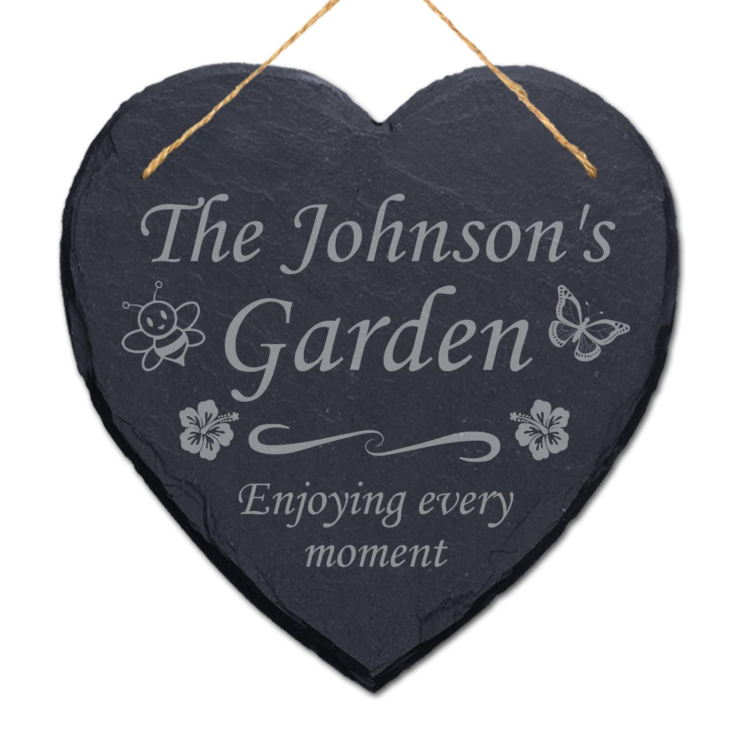 Personalised Engraved Natural Slate Hanging Family Garden Sign Plaque