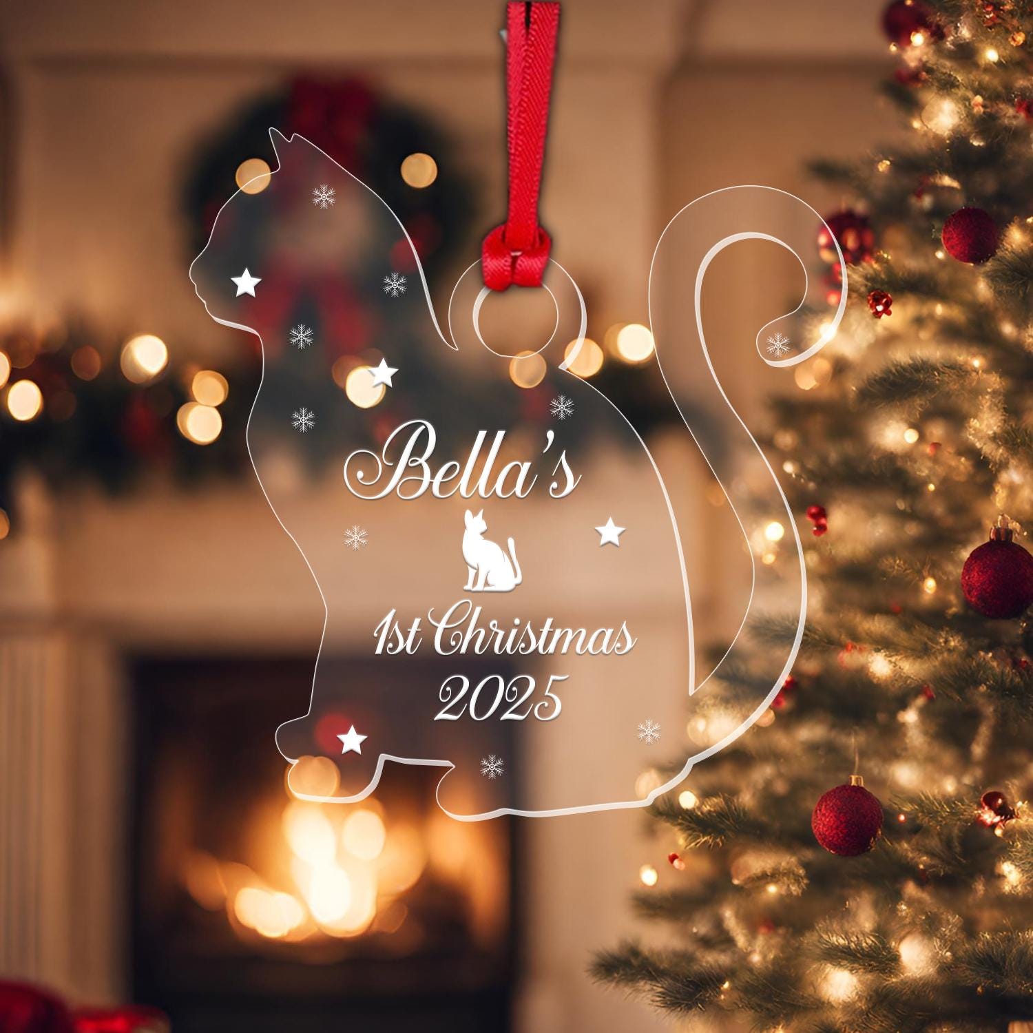 Personalised First Christmas Cat Bauble 1st Kitten Xmas Acrylic Tree Decoration Gift