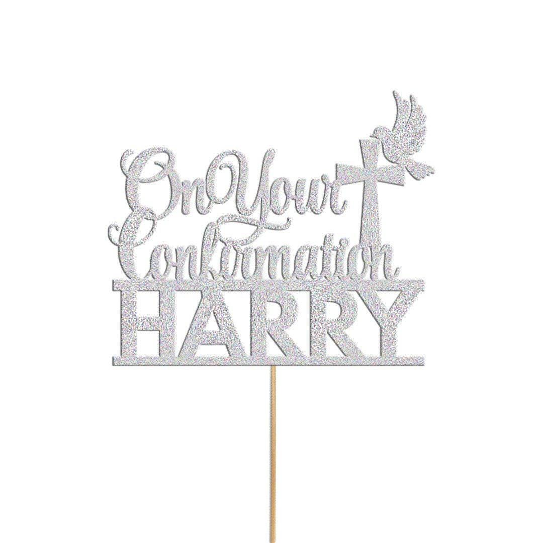 Personalised Glitter Confirmation Cake Topper: Dove, Cross, Any Name