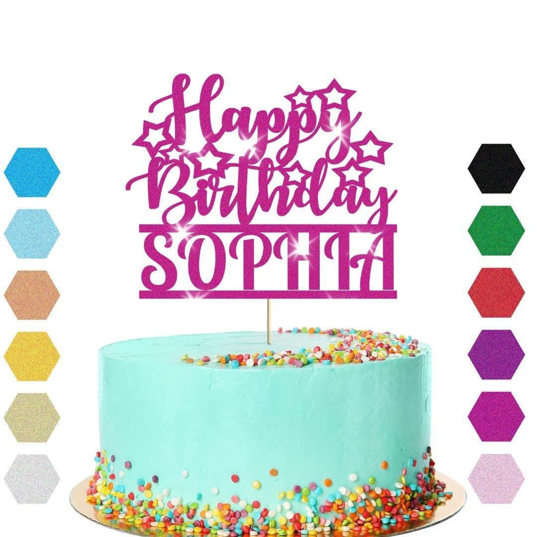 Personalised Glitter Happy Birthday Cake Topper Party Cake Age & Name Decoration