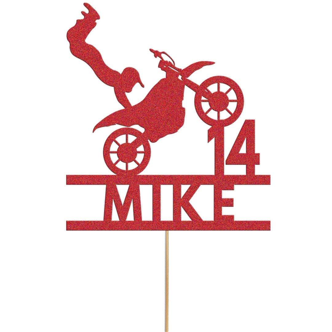 Personalised Glitter Motorbike Cake Topper: Biker Birthday Decoration