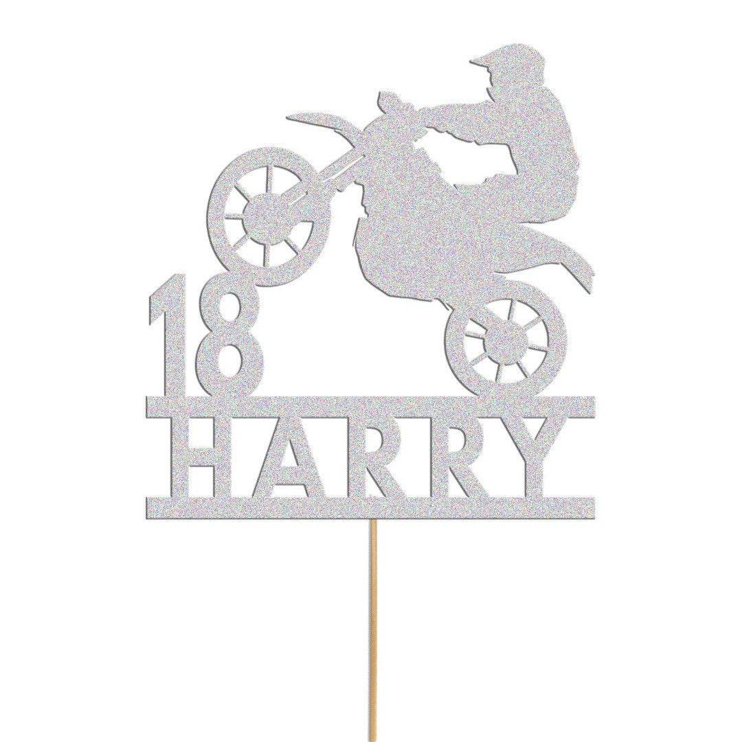Personalised Glitter Motorbike Cake Topper: Biker Birthday Decoration