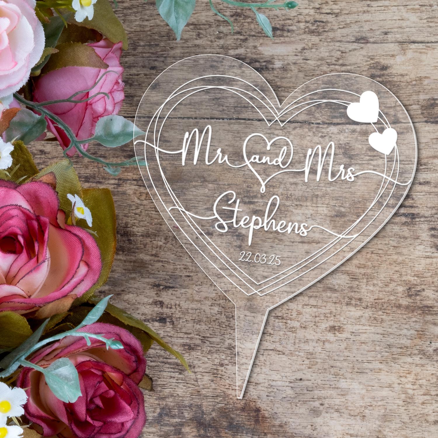 Personalised Heart Wedding Cake Topper Engraved Acrylic Decoration Any Names