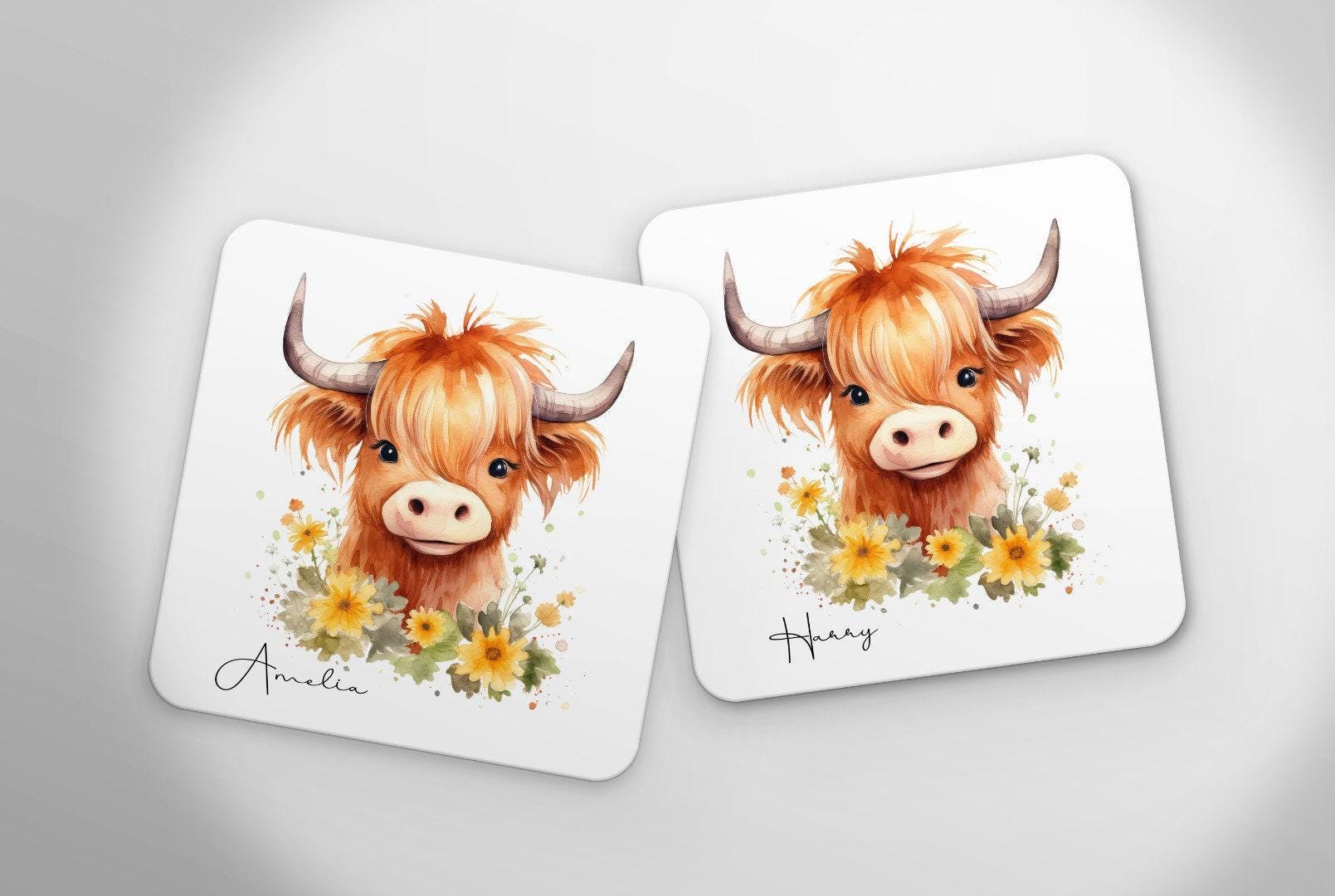 Personalised Highland Cow Mug & Coaster Set: Fluffy Cow Gift