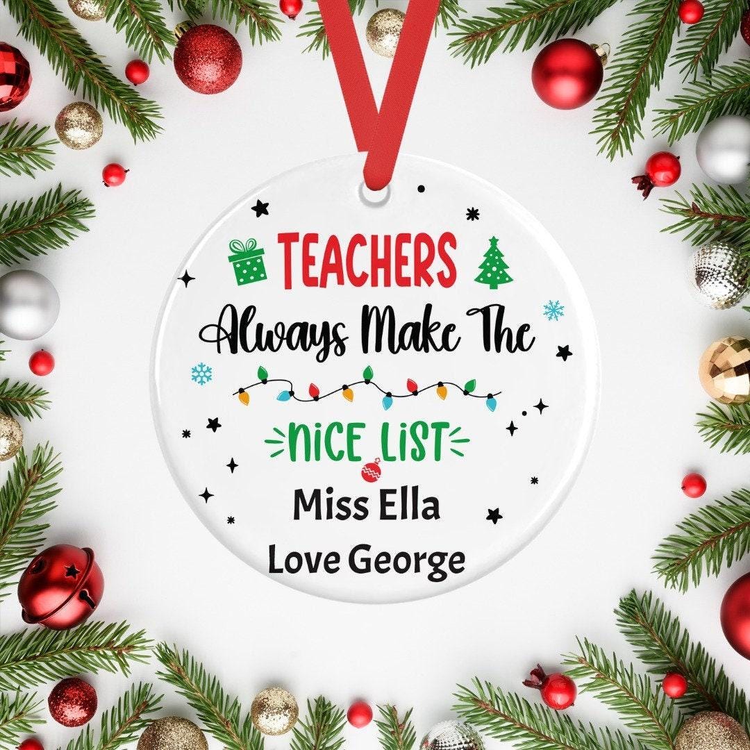 Personalised Teacher Always Make The Nice List Ceramic Hanging Bauble Teacher Present Teaching Gift
